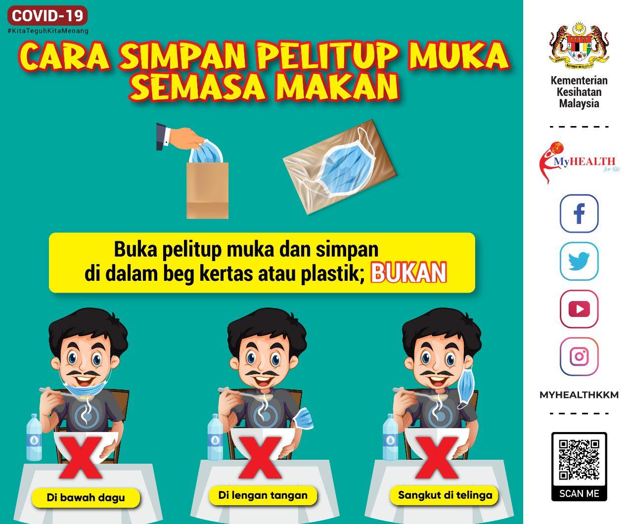 Cara Simpan Pelitup Muka (Face Mask) Semasa Makan Asrul Nasihat 11 Ogos 2020 Jumlah paparan: 1619 Rating: ( 0 Rating ) Sila beri kadar Undi 1 Undi 2 Undi 3 Undi 4 Undi 5 Facebook Twitter Seterusnya Seterusnya
