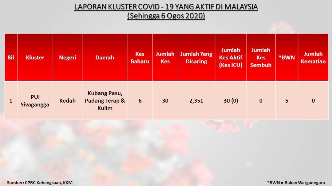 Laporan Kluster COVID-19 Aktif Di Malaysia 06/08/2020 Asrul Siaran Media 06 Ogos 2020 Jumlah paparan: 762 Rating: ( 0 Rating ) Sila beri kadar Undi 1 Undi 2 Undi 3 Undi 4 Undi 5 Facebook Twitter Seterusnya Seterusnya