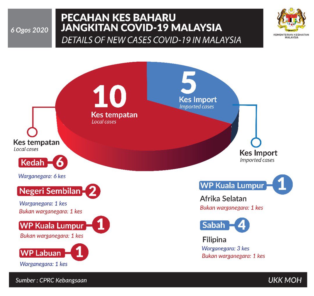 Statistik Pecahan Kes Baharu Jangkitan COVID-19 Malaysia 06/08/2020 Asrul Siaran Media 06 Ogos 2020 Jumlah paparan: 694 Rating: ( 0 Rating ) Sila beri kadar Undi 1 Undi 2 Undi 3 Undi 4 Undi 5 Facebook Twitter Seterusnya Seterusnya