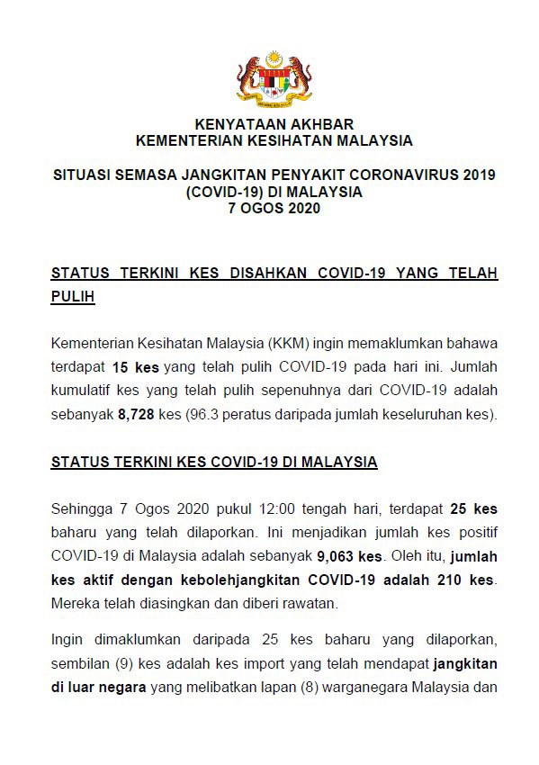 Kenyataan Media KP KKM 07/08/2020 0500 PM Asrul Siaran Media 07 Ogos 2020 Jumlah paparan: 552 Rating: ( 0 Rating ) Sila beri kadar Undi 1 Undi 2 Undi 3 Undi 4 Undi 5 Facebook Twitter Seterusnya Seterusnya