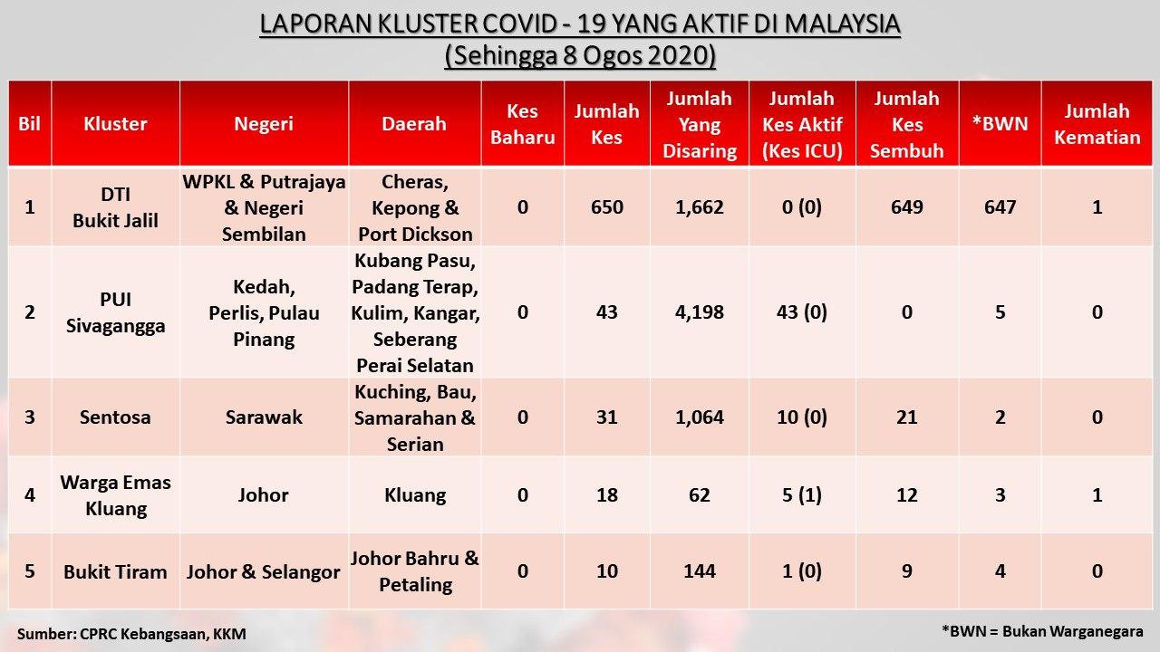 Laporan Kluster COVID-19 Aktif Di Malaysia 08/08/2020 Asrul Siaran Media 08 Ogos 2020 Jumlah paparan: 1058 Rating: ( 0 Rating ) Sila beri kadar Undi 1 Undi 2 Undi 3 Undi 4 Undi 5 Facebook Twitter Seterusnya Seterusnya