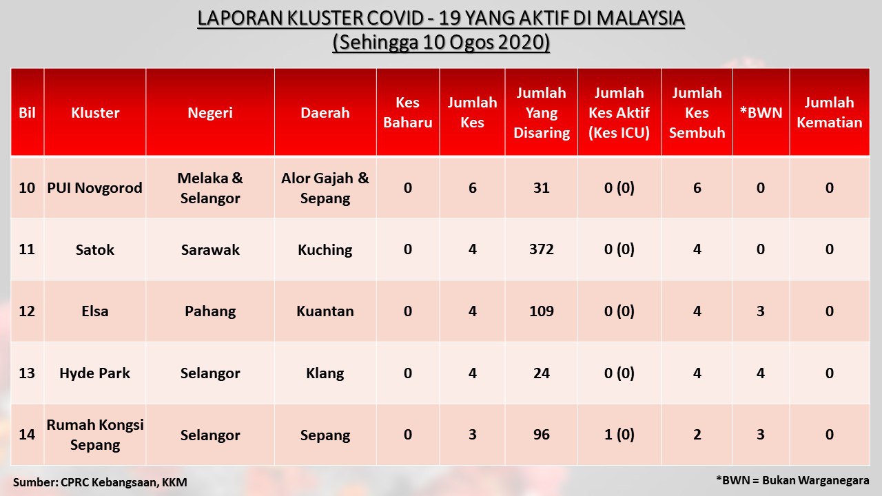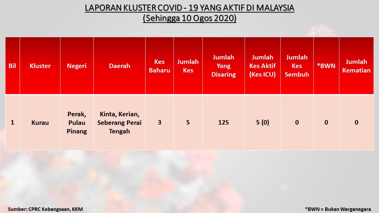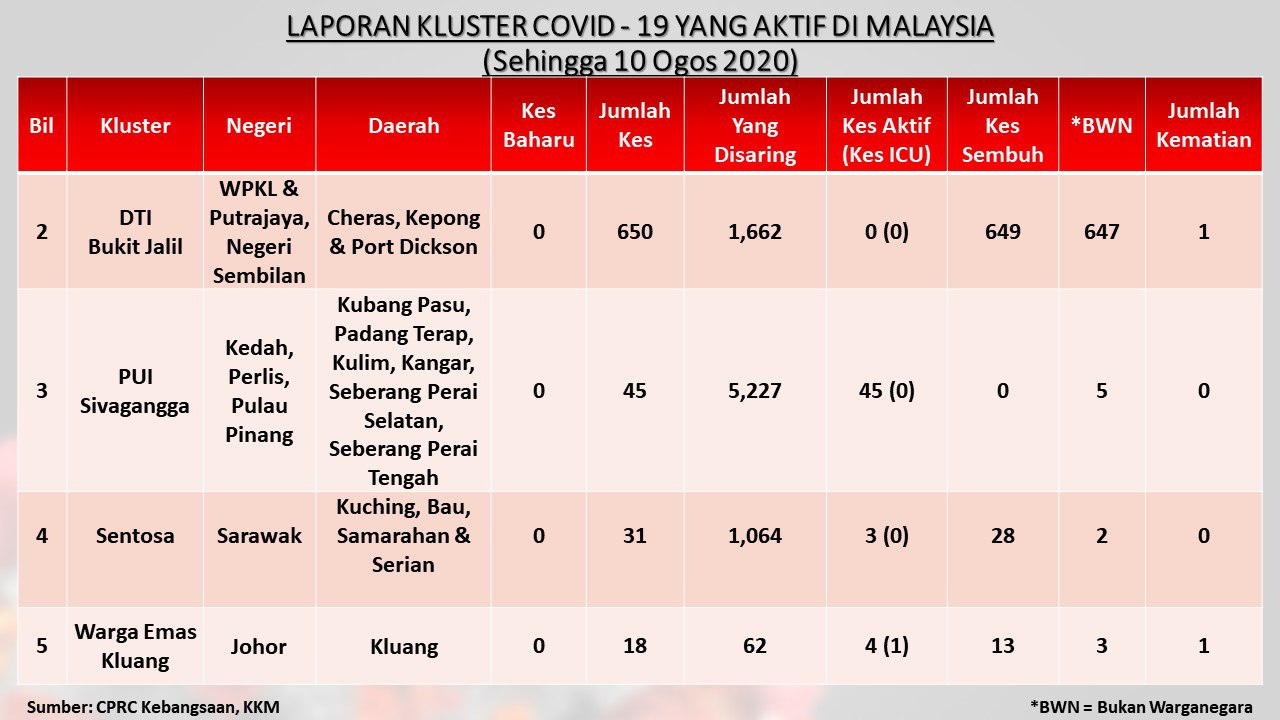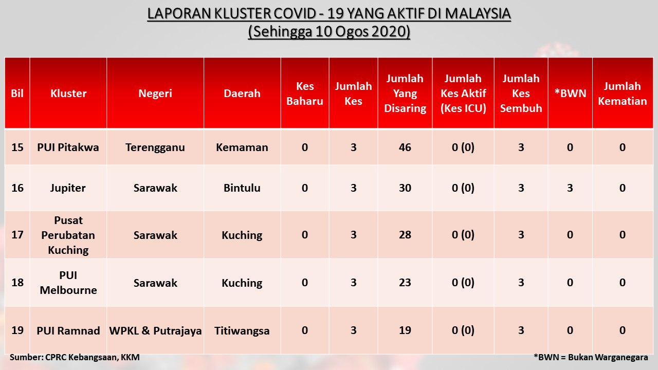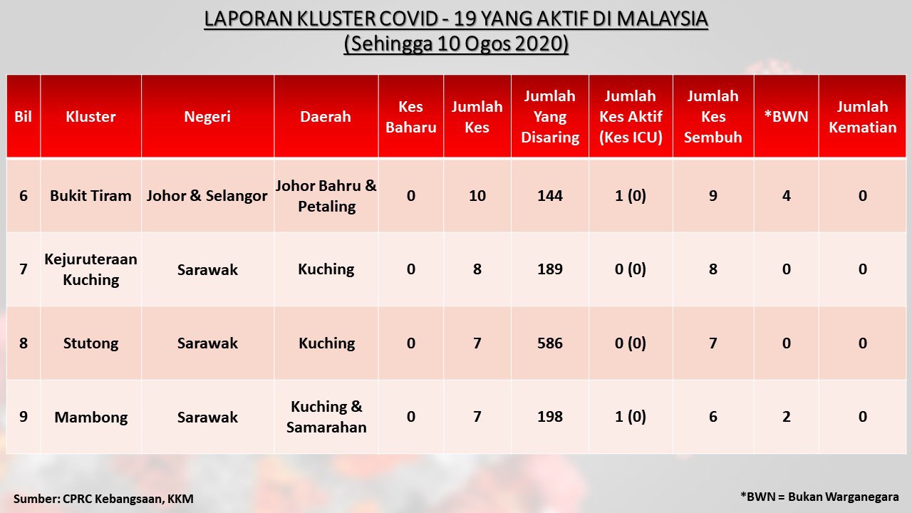 Laporan Kluster COVID-19 Aktif Di Malaysia 10/08/2020 Aiman Siaran Media 10 Ogos 2020 Jumlah paparan: 844 Rating: ( 0 Rating ) Sila beri kadar Undi 1 Undi 2 Undi 3 Undi 4 Undi 5 Facebook Twitter Seterusnya Seterusnya