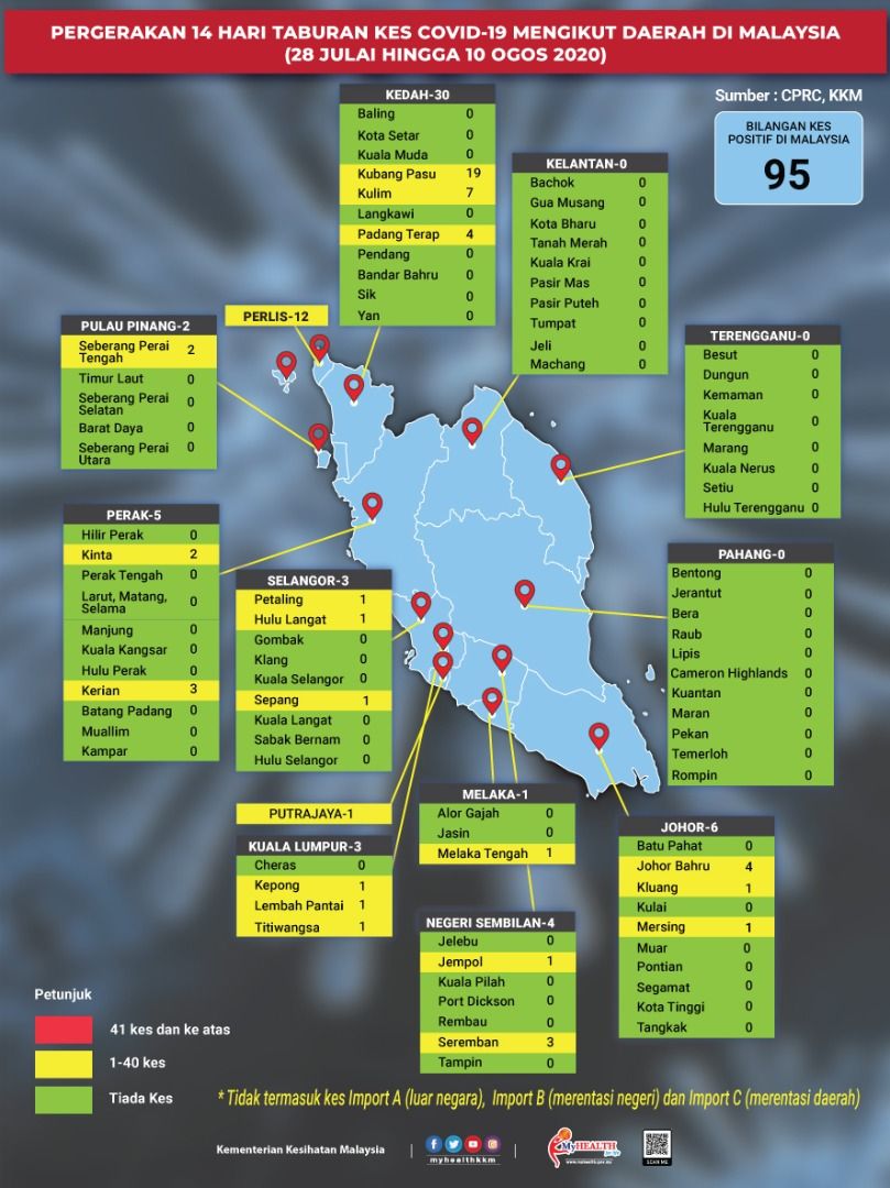 Pergerakan 14 Hari Taburan Kes COVID-19 Mengikut Daerah Di Malaysia 10/08/2020 Aiman Siaran Media 10 Ogos 2020 Jumlah paparan: 1018 Rating: ( 0 Rating ) Sila beri kadar Undi 1 Undi 2 Undi 3 Undi 4 Undi 5 Facebook Twitter Seterusnya Seterusnya