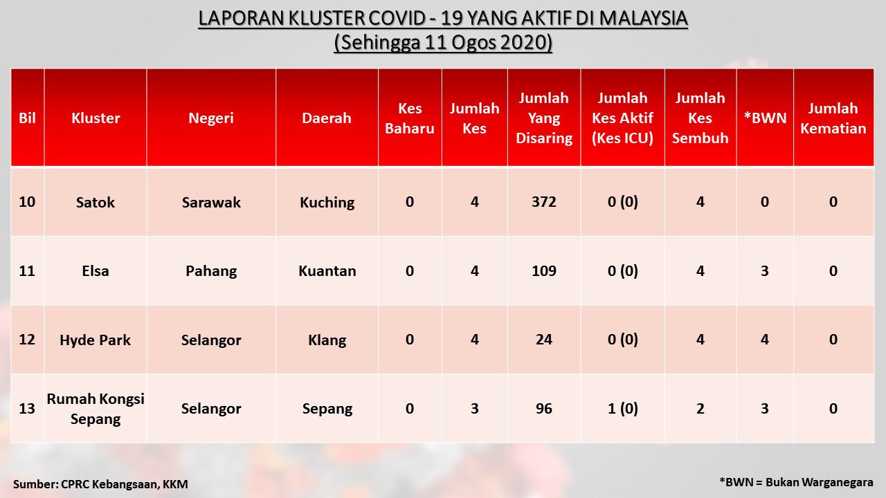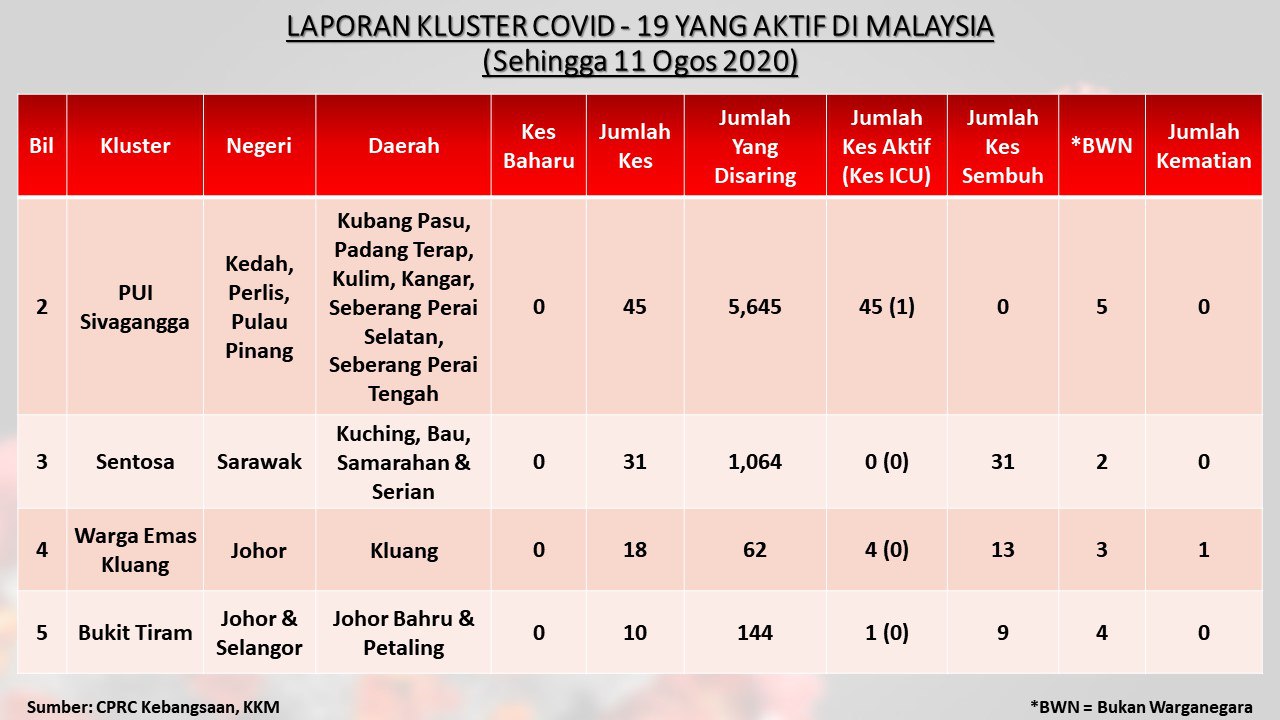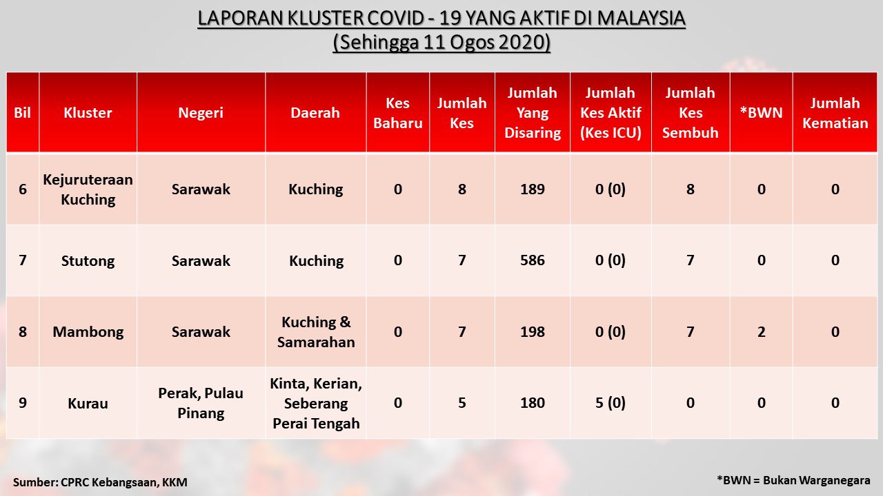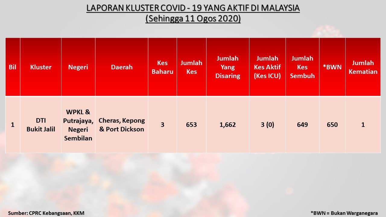 Laporan Kluster COVID-19 Aktif Di Malaysia 11/08/2020 Aiman Siaran Media 11 Ogos 2020 Jumlah paparan: 725 Rating: ( 0 Rating ) Sila beri kadar Undi 1 Undi 2 Undi 3 Undi 4 Undi 5 Facebook Twitter Seterusnya Seterusnya