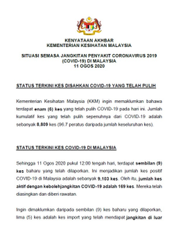 Kenyataan Media KP KKM 11/08/2020 0500 PM Asrul Siaran Media 11 Ogos 2020 Jumlah paparan: 943 Rating: ( 0 Rating ) Sila beri kadar Undi 1 Undi 2 Undi 3 Undi 4 Undi 5 Facebook Twitter Seterusnya Seterusnya