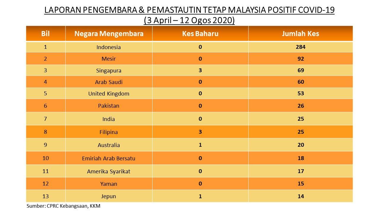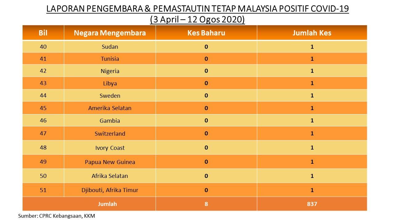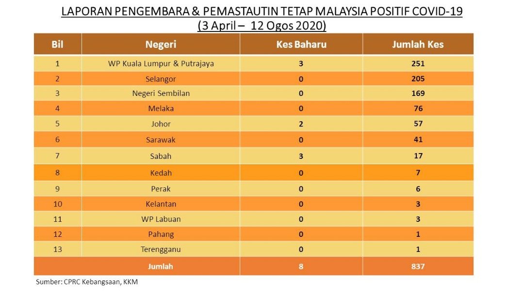 Laporan Pengembara & Pemastautin Tetap Malaysia Positif COVID-19 12/08/2020 Asrul Siaran Media 12 Ogos 2020 Jumlah paparan: 952 Rating: ( 0 Rating ) Sila beri kadar Undi 1 Undi 2 Undi 3 Undi 4 Undi 5 Facebook Twitter Seterusnya Seterusnya