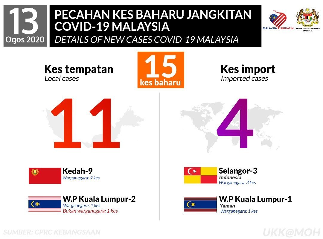 Statistik Pecahan Kes Baharu Jangkitan COVID-19 Malaysia 13/08/2020 Asrul Siaran Media 13 Ogos 2020 Jumlah paparan: 706 Rating: ( 0 Rating ) Sila beri kadar Undi 1 Undi 2 Undi 3 Undi 4 Undi 5 Facebook Twitter Seterusnya Seterusnya