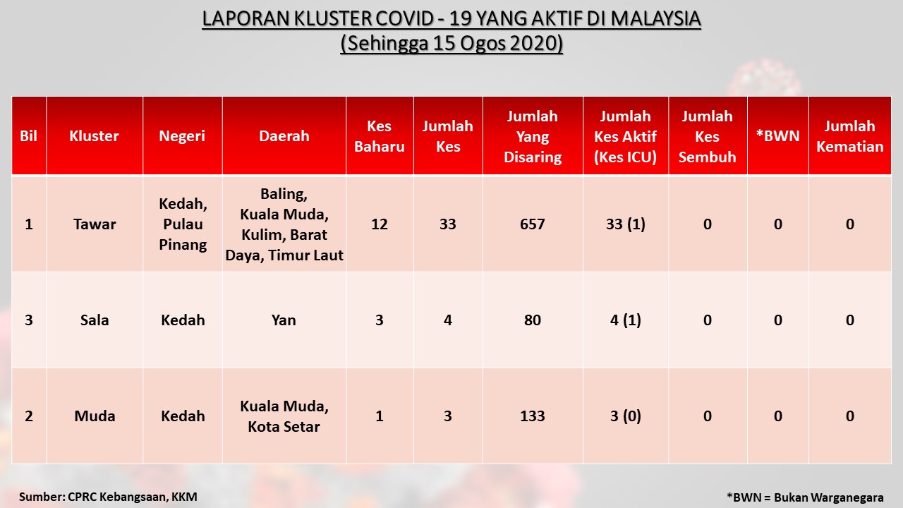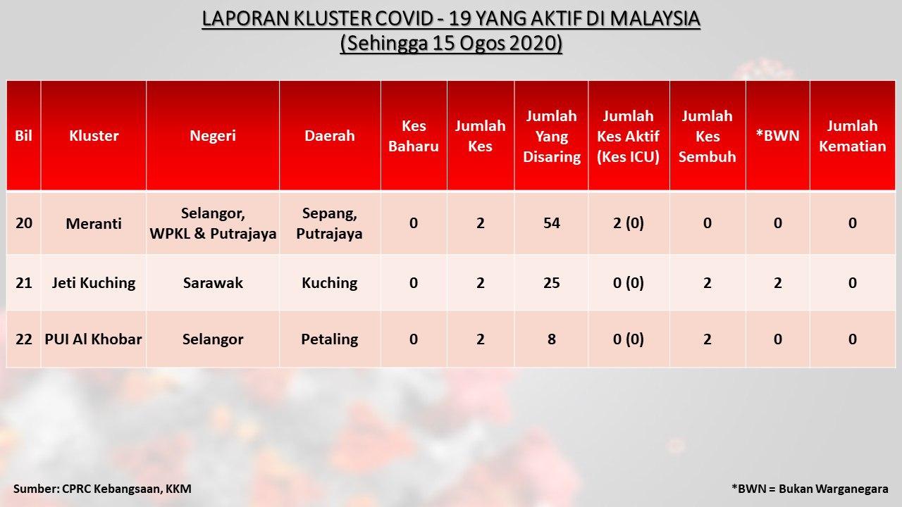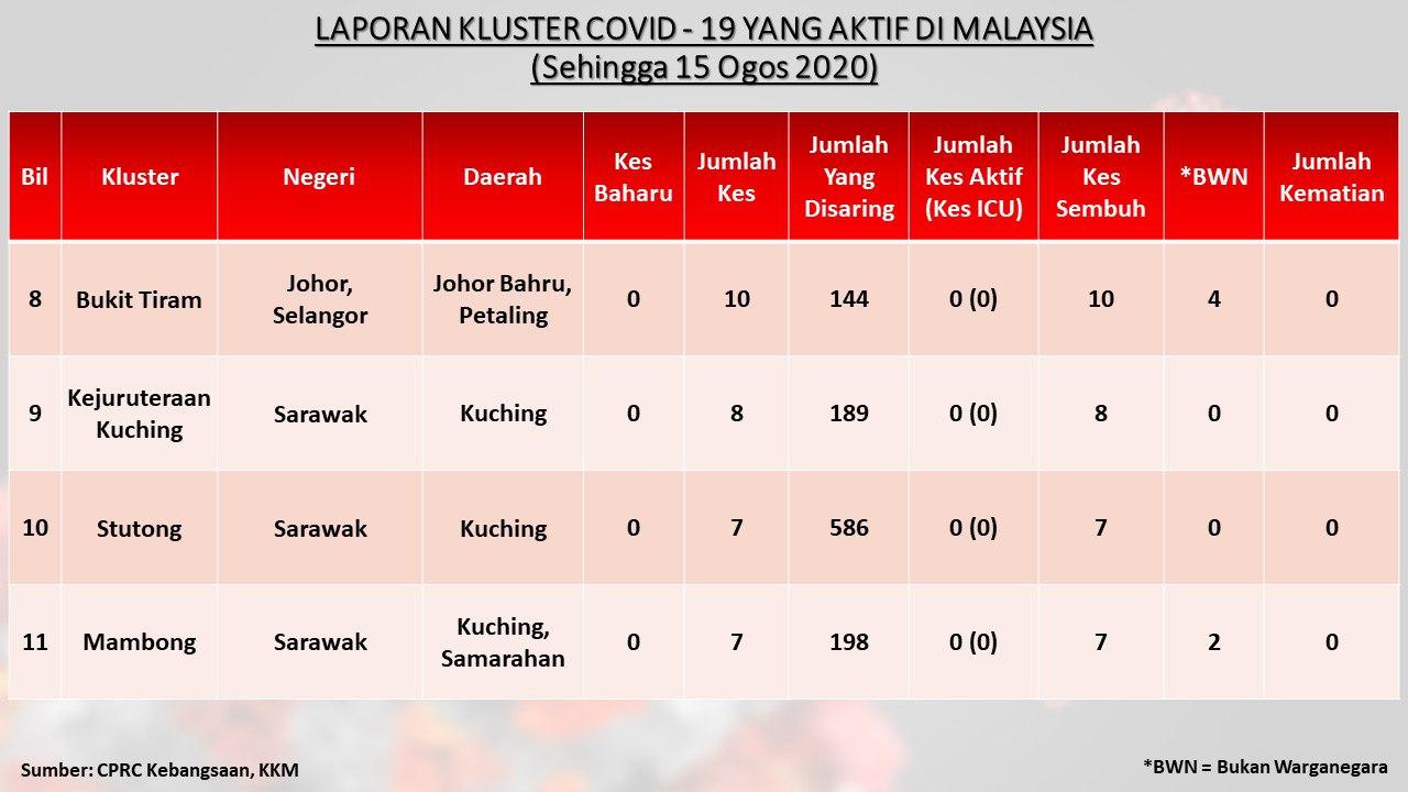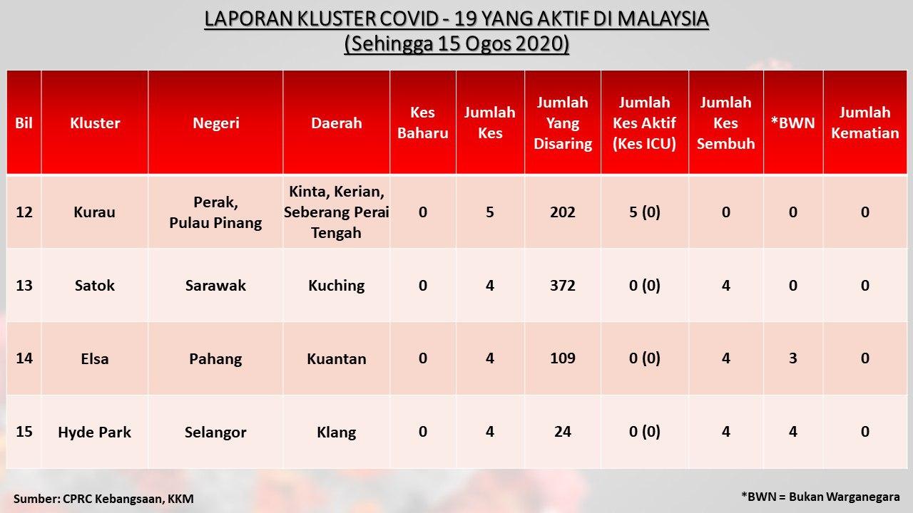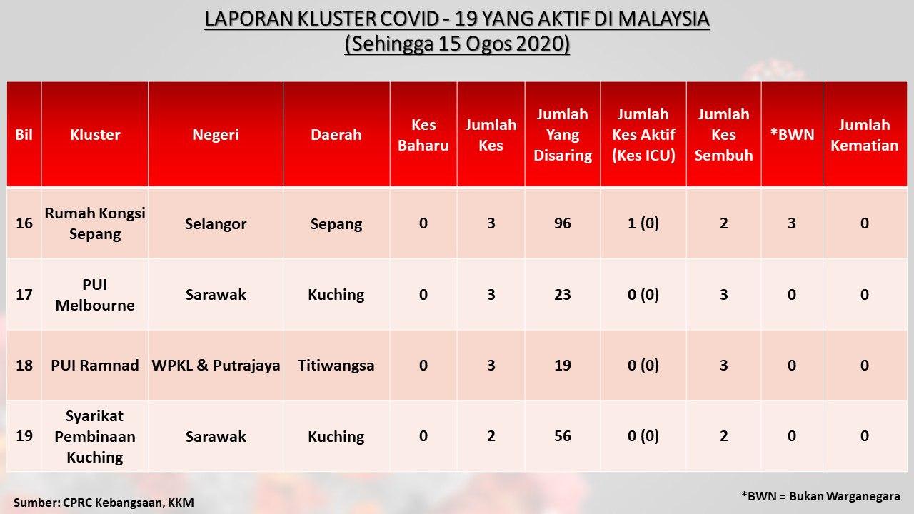 Laporan Kluster COVID-19 Aktif Di Malaysia 15/08/2020 Asrul Siaran Media 15 Ogos 2020 Jumlah paparan: 885 Rating: ( 0 Rating ) Sila beri kadar Undi 1 Undi 2 Undi 3 Undi 4 Undi 5 Facebook Twitter Seterusnya Seterusnya