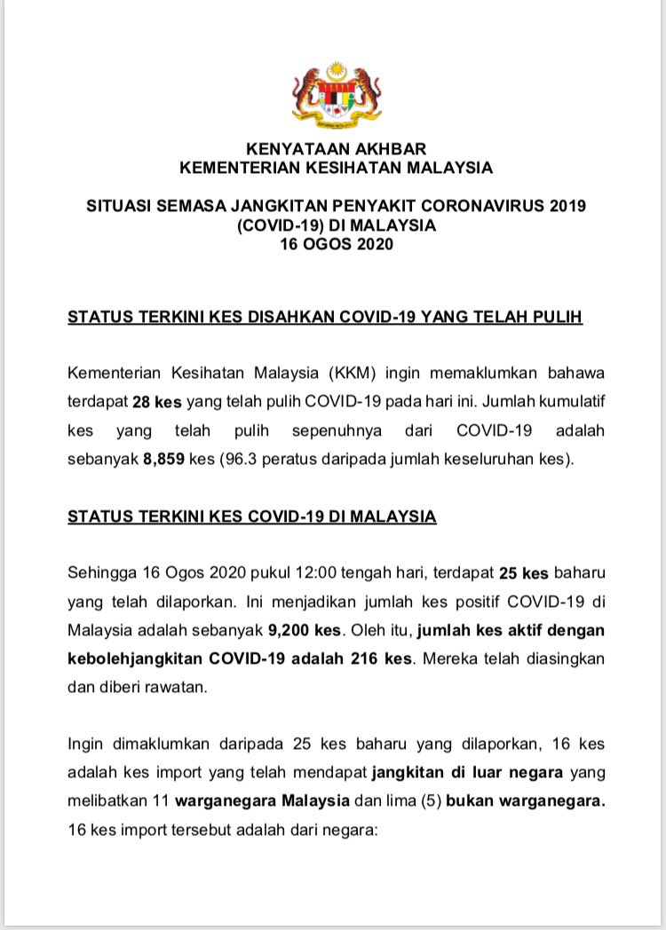 Kenyataan Media KP KKM 16/08/2020 0500 PM Asrul Siaran Media 16 Ogos 2020 Jumlah paparan: 876 Rating: ( 0 Rating ) Sila beri kadar Undi 1 Undi 2 Undi 3 Undi 4 Undi 5 Facebook Twitter Seterusnya Seterusnya