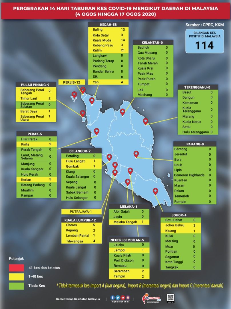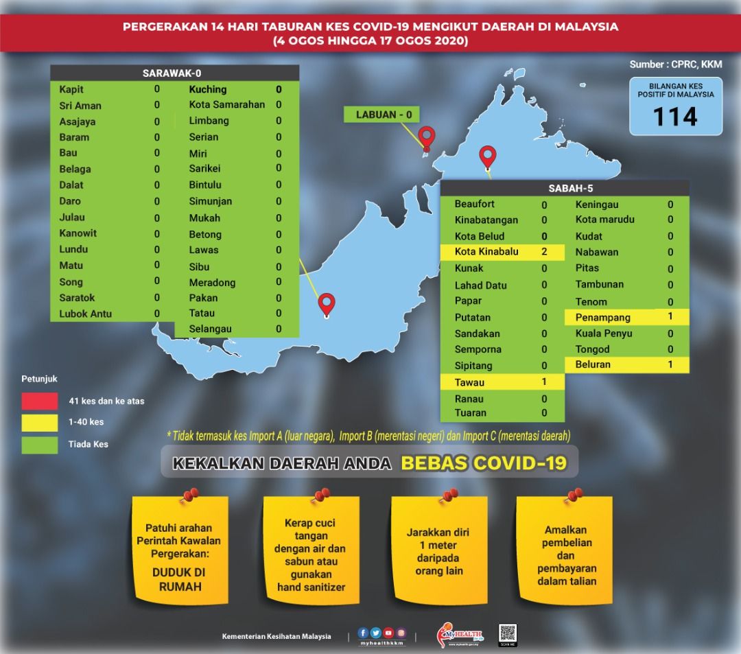 Pergerakan 14 Hari Taburan Kes COVID-19 Mengikut Daerah Di Malaysia 17/08/2020 Aiman Siaran Media 17 Ogos 2020 Jumlah paparan: 991 Rating: ( 0 Rating ) Sila beri kadar Undi 1 Undi 2 Undi 3 Undi 4 Undi 5 Facebook Twitter Seterusnya Seterusnya