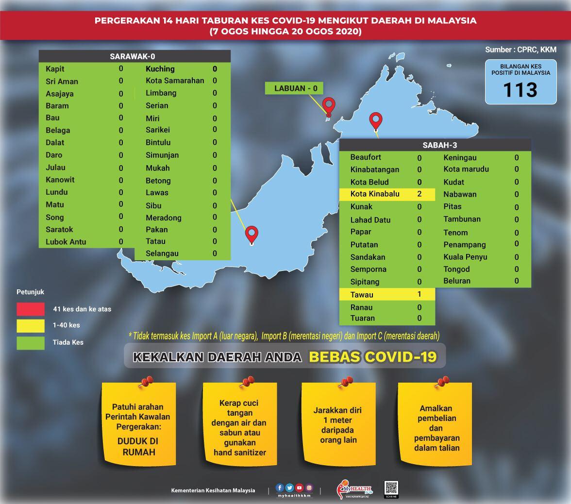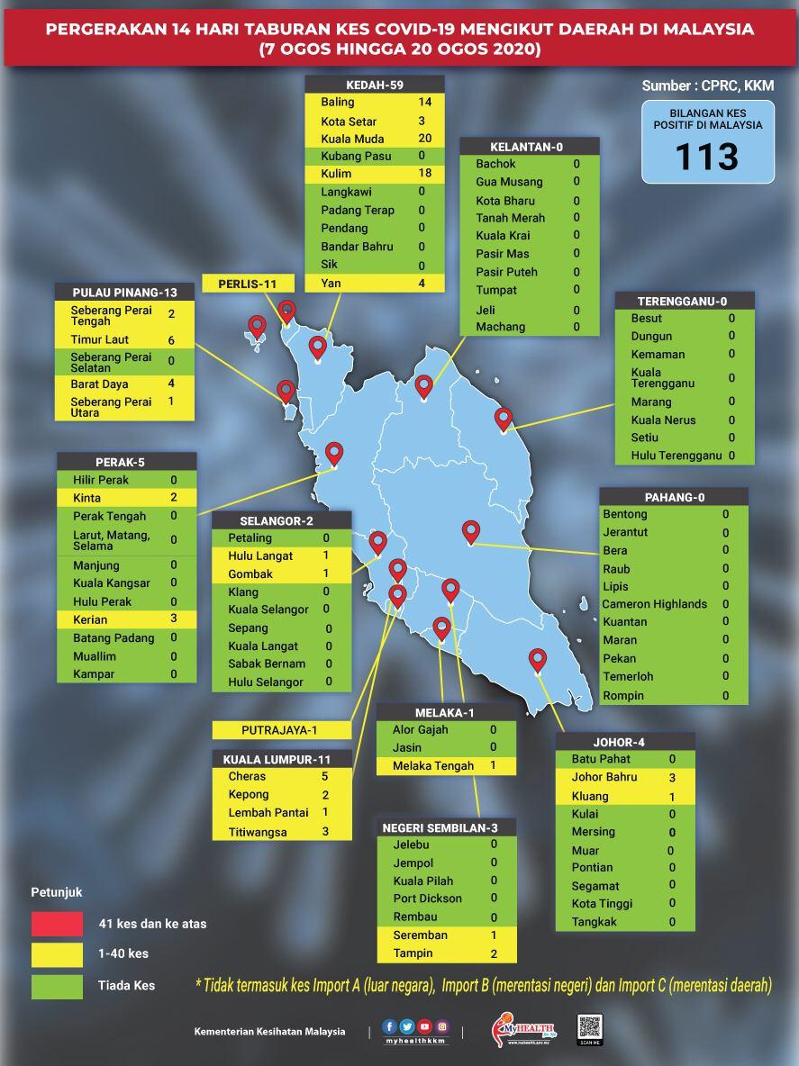 Pergerakan 14 Hari Taburan Kes COVID-19 Mengikut Daerah Di Malaysia 20/08/2020 Asrul Siaran Media 20 Ogos 2020 Jumlah paparan: 827 Rating: ( 0 Rating ) Sila beri kadar Undi 1 Undi 2 Undi 3 Undi 4 Undi 5 Facebook Twitter Seterusnya Seterusnya