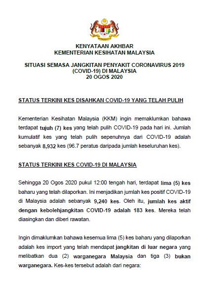 Kenyataan Media KP KKM 20/08/2020 0500 PM Asrul Siaran Media 20 Ogos 2020 Jumlah paparan: 1058 Rating: ( 0 Rating ) Sila beri kadar Undi 1 Undi 2 Undi 3 Undi 4 Undi 5 Facebook Twitter Seterusnya Seterusnya