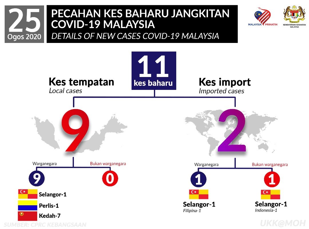 Statistik Pecahan Kes Baharu Jangkitan COVID-19 Malaysia 25/08/2020 Aiman Siaran Media 25 Ogos 2020 Jumlah paparan: 828 Rating: ( 0 Rating ) Sila beri kadar Undi 1 Undi 2 Undi 3 Undi 4 Undi 5 Facebook Twitter Seterusnya Seterusnya