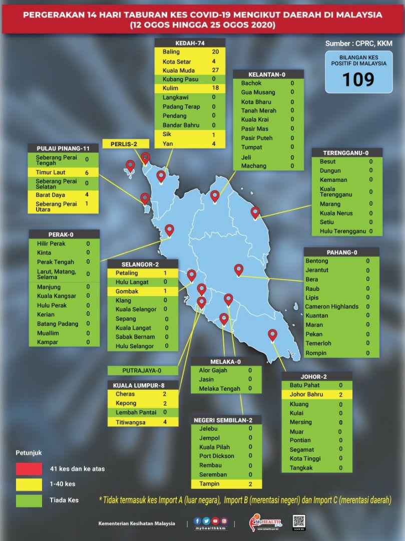 Pergerakan 14 Hari Taburan Kes COVID-19 Mengikut Daerah Di Malaysia 25/08/2020 Asrul Siaran Media 25 Ogos 2020 Jumlah paparan: 817 Rating: ( 0 Rating ) Sila beri kadar Undi 1 Undi 2 Undi 3 Undi 4 Undi 5 Facebook Twitter Seterusnya Seterusnya