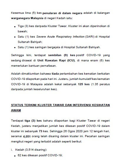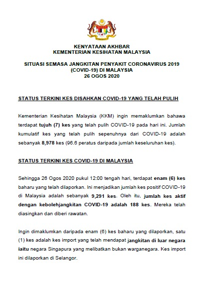 Kenyataan Akhbar KP KKM 26/08/2020 0500 PM Asrul Siaran Media 26 Ogos 2020 Jumlah paparan: 1190 Rating: ( 0 Rating ) Sila beri kadar Undi 1 Undi 2 Undi 3 Undi 4 Undi 5 Facebook Twitter Seterusnya Seterusnya