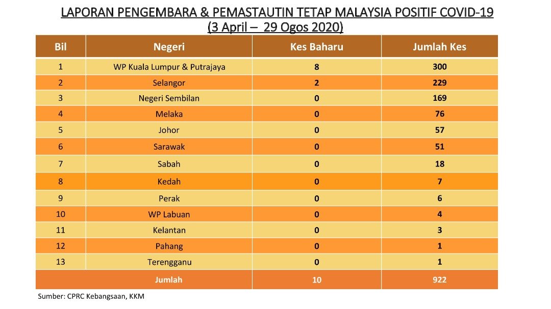 Laporan Pengembara & Pemastautin Tetap Malaysia Positif COVID-19 29/08/2020 Asrul Siaran Media 29 Ogos 2020 Jumlah paparan: 875 Rating: ( 0 Rating ) Sila beri kadar Undi 1 Undi 2 Undi 3 Undi 4 Undi 5 Facebook Twitter Seterusnya Seterusnya