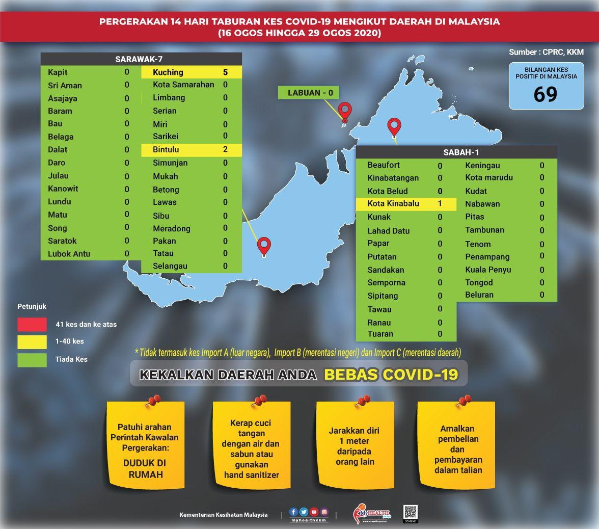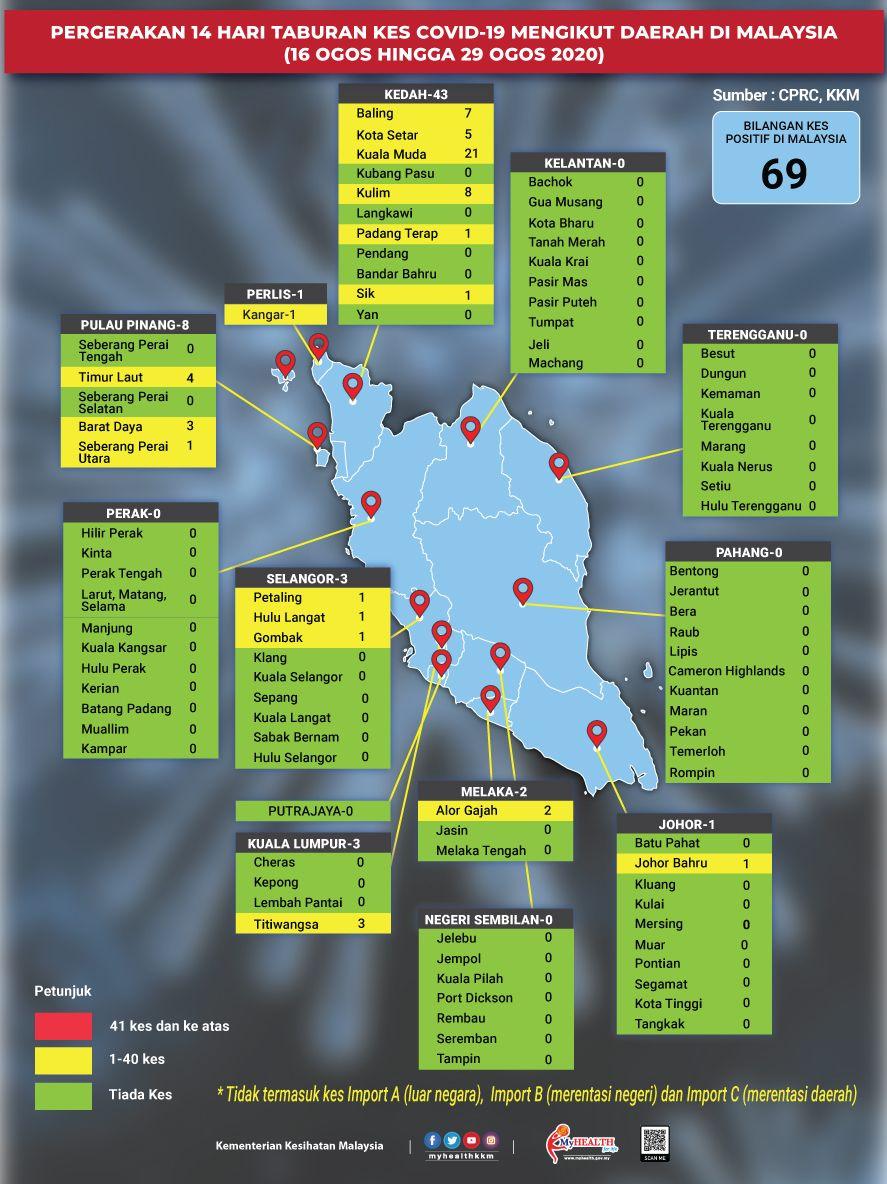 Pergerakan 14 Hari Taburan Kes COVID-19 Mengikut Daerah Di Malaysia 29/08/2020 Asrul Siaran Media 29 Ogos 2020 Jumlah paparan: 966 Rating: ( 0 Rating ) Sila beri kadar Undi 1 Undi 2 Undi 3 Undi 4 Undi 5 Facebook Twitter Seterusnya Seterusnya