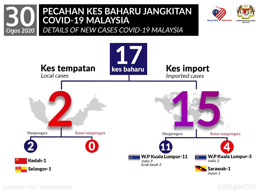 Statistik Pecahan Kes Baharu Jangkitan COVID-19 Malaysia 30/08/2020 Asrul Siaran Media 30 Ogos 2020 Jumlah paparan: 996 Rating: ( 0 Rating ) Sila beri kadar Undi 1 Undi 2 Undi 3 Undi 4 Undi 5 Facebook Twitter Seterusnya Seterusnya