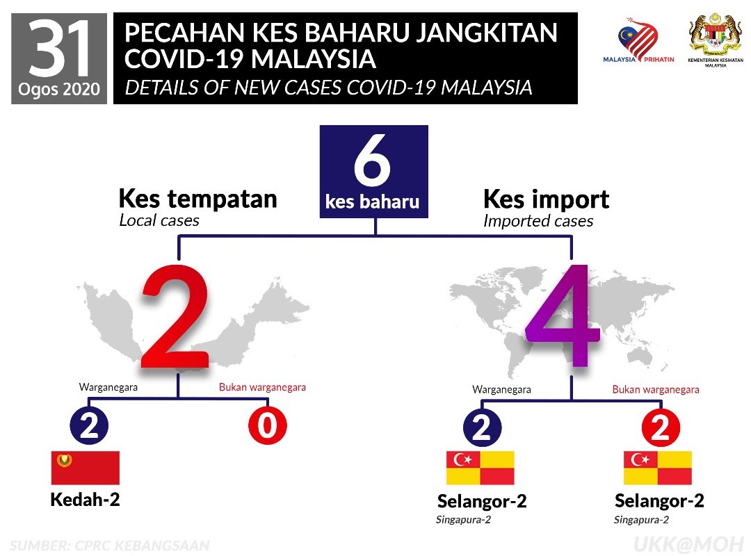 Statistik Pecahan Kes Baharu Jangkitan COVID-19 Malaysia 31/08/2020 Asrul Siaran Media 31 Ogos 2020 Jumlah paparan: 771 Rating: ( 0 Rating ) Sila beri kadar Undi 1 Undi 2 Undi 3 Undi 4 Undi 5 Facebook Twitter Seterusnya Seterusnya