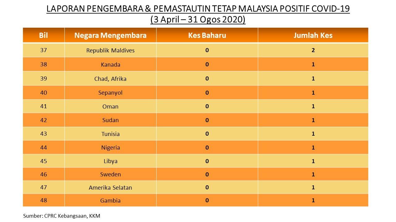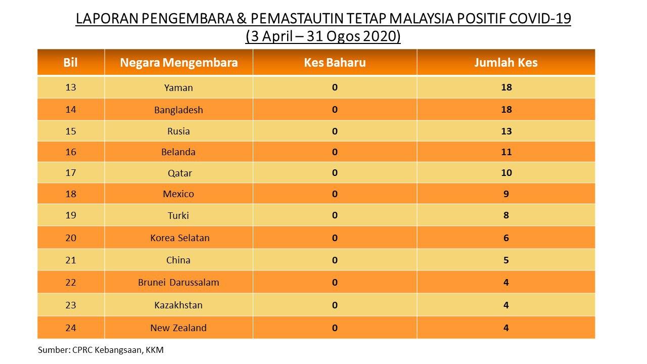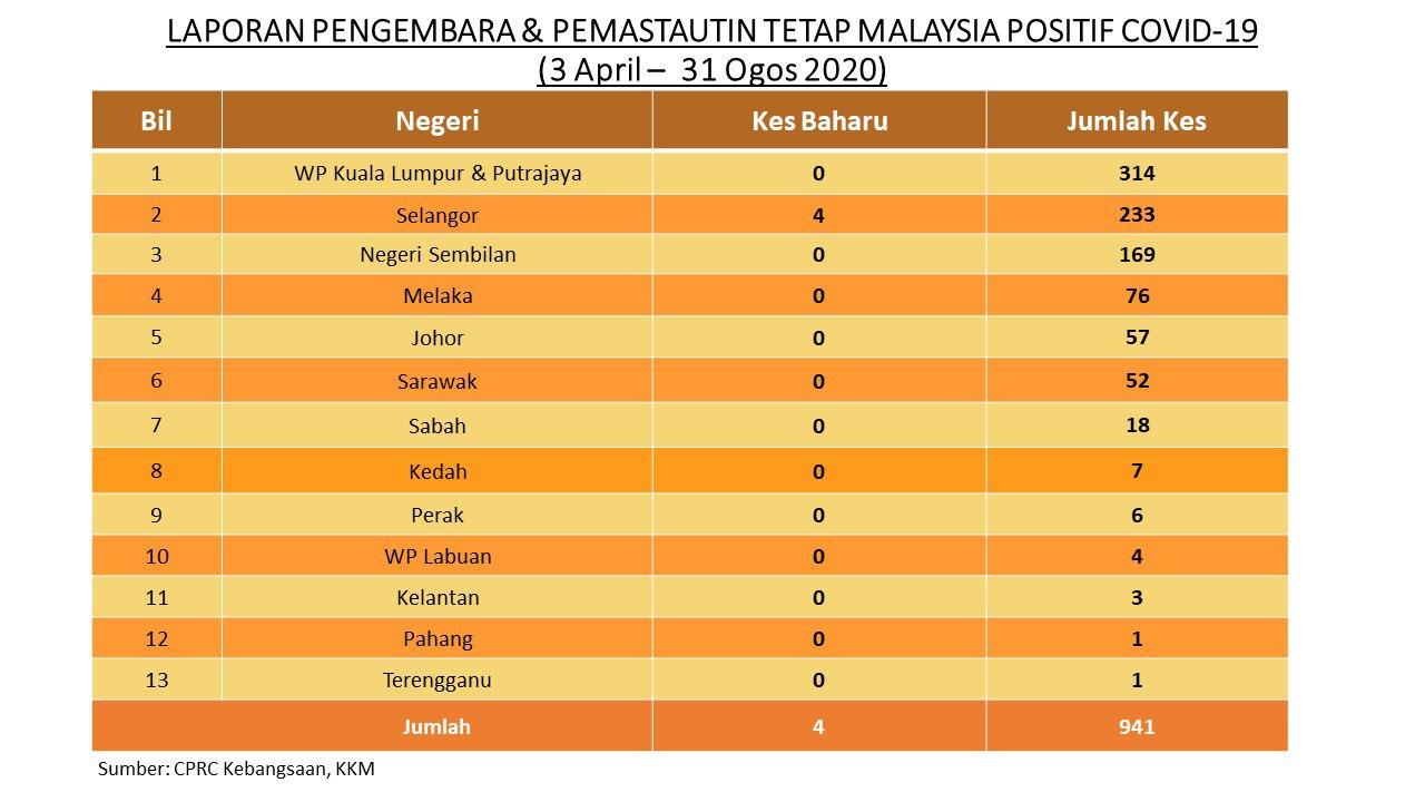 Laporan Pengembara & Pemastautin Tetap Malaysia Positif COVID-19 31/08/2020 Asrul Siaran Media 31 Ogos 2020 Jumlah paparan: 750 Rating: ( 0 Rating ) Sila beri kadar Undi 1 Undi 2 Undi 3 Undi 4 Undi 5 Facebook Twitter Seterusnya Seterusnya