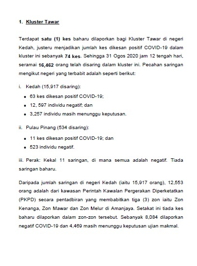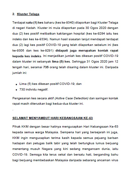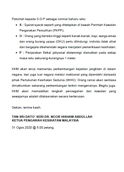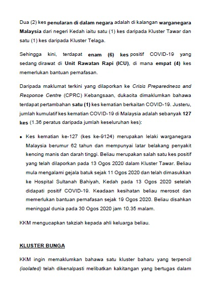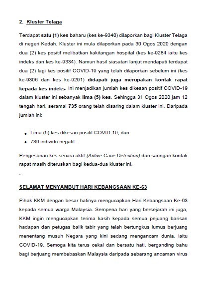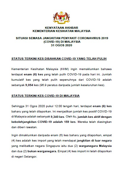 Kenyataan Akhbar KP KKM 31/08/2020 0500 PM Asrul Siaran Media 31 Ogos 2020 Jumlah paparan: 666 Rating: ( 0 Rating ) Sila beri kadar Undi 1 Undi 2 Undi 3 Undi 4 Undi 5 Facebook Twitter Seterusnya Seterusnya