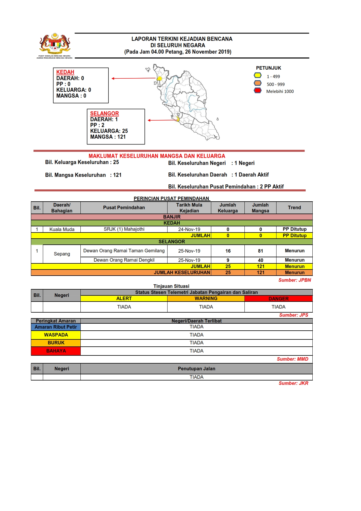 Cetak Laporan Situasi Bencana 26/11/2019 Jam 0400 PM Asrul Laporan Situasi 26 November 2019 Muat Turun PDF Muat Turun JPG Facebook Twitter Seterusnya Seterusnya