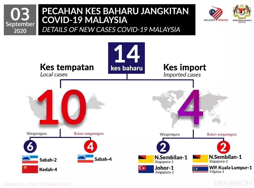 Statistik Pecahan Kes Baharu Jangkitan COVID-19 Malaysia 03/09/2020 Aiman Siaran Media 03 September 2020 Jumlah paparan: 907 Rating: ( 0 Rating ) Sila beri kadar Undi 1 Undi 2 Undi 3 Undi 4 Undi 5 Facebook Twitter Seterusnya Seterusnya