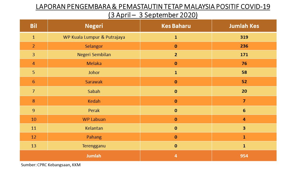 Laporan Pengembara & Pemastautin Tetap Malaysia Positif COVID-19 03/09/2020 Aiman Siaran Media 03 September 2020 Jumlah paparan: 934 Rating: ( 0 Rating ) Sila beri kadar Undi 1 Undi 2 Undi 3 Undi 4 Undi 5 Facebook Twitter Seterusnya Seterusnya