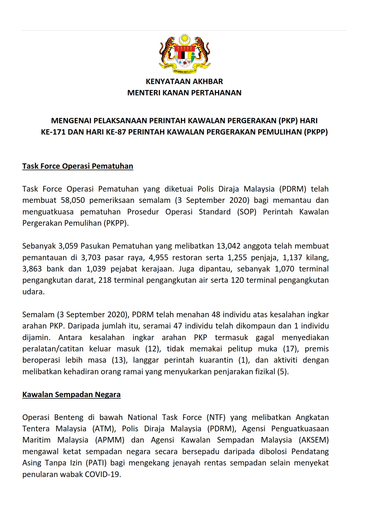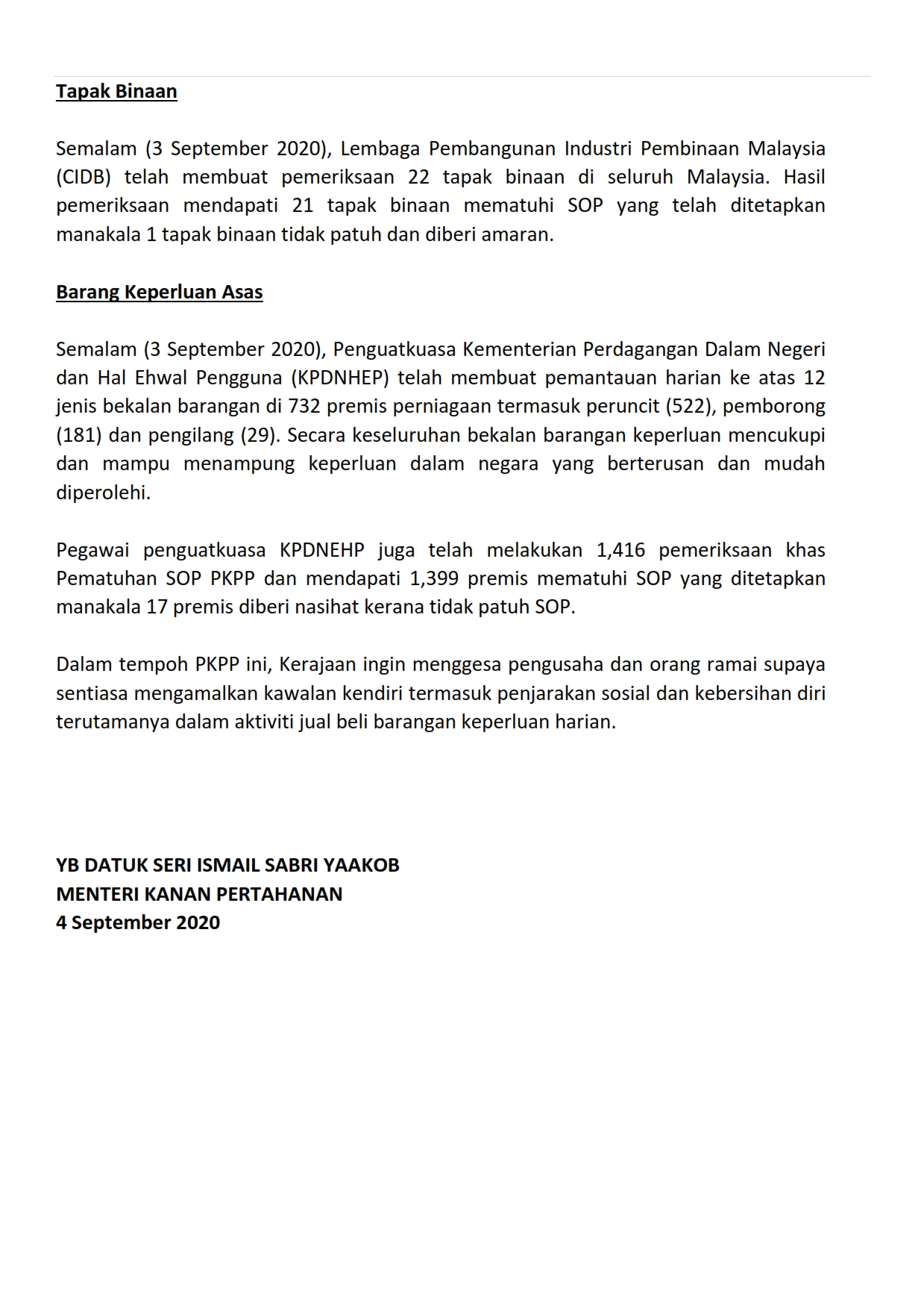Kenyataan Akhbar Menteri Kanan Pertahanan 04/09/2020 0200 PM Aiman Siaran Media 04 September 2020 Jumlah paparan: 719 Rating: ( 0 Rating ) Sila beri kadar Undi 1 Undi 2 Undi 3 Undi 4 Undi 5 Lihat / Muat Turun PDF Facebook Twitter Seterusnya Seterusnya