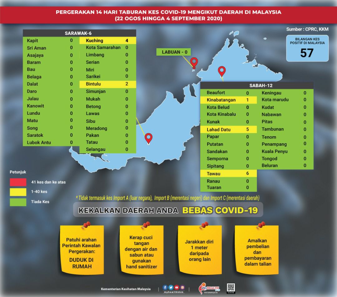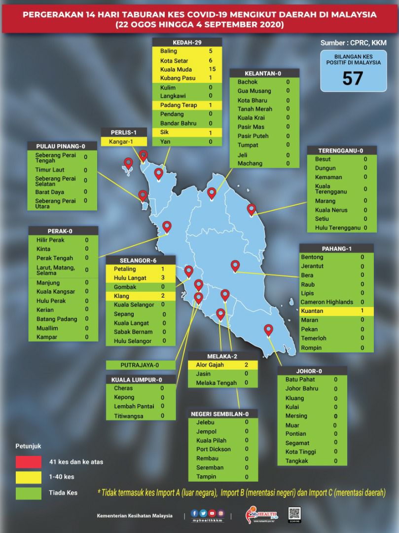 Pergerakan 14 Hari Taburan Kes COVID-19 Mengikut Daerah Di Malaysia 04/09/2020 Aiman Siaran Media 04 September 2020 Jumlah paparan: 856 Rating: ( 0 Rating ) Sila beri kadar Undi 1 Undi 2 Undi 3 Undi 4 Undi 5 Facebook Twitter Seterusnya Seterusnya
