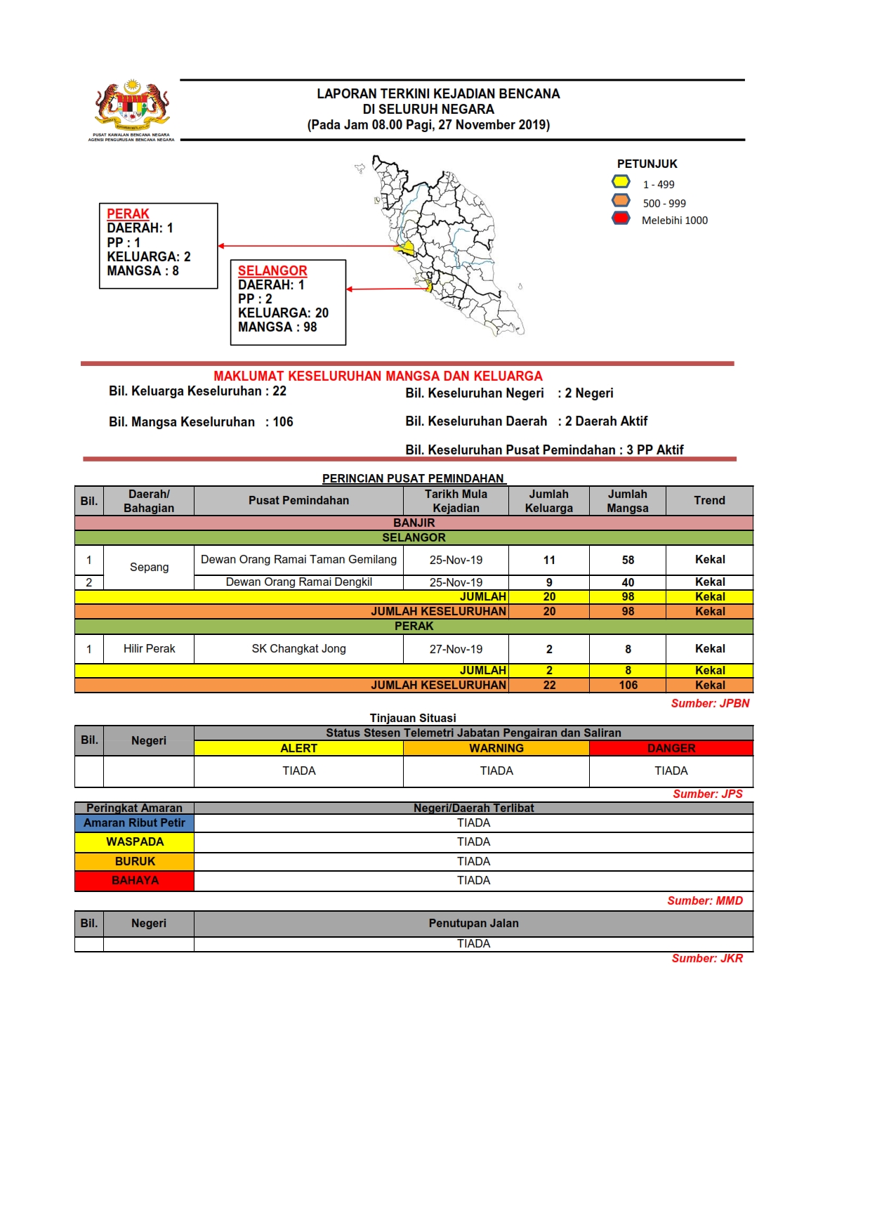 Cetak Laporan Situasi Bencana 27/11/2019 Jam 0800 AM Asrul Laporan Situasi 27 November 2019 Muat Turun PDF Muat Turun JPG Facebook Twitter Seterusnya Seterusnya