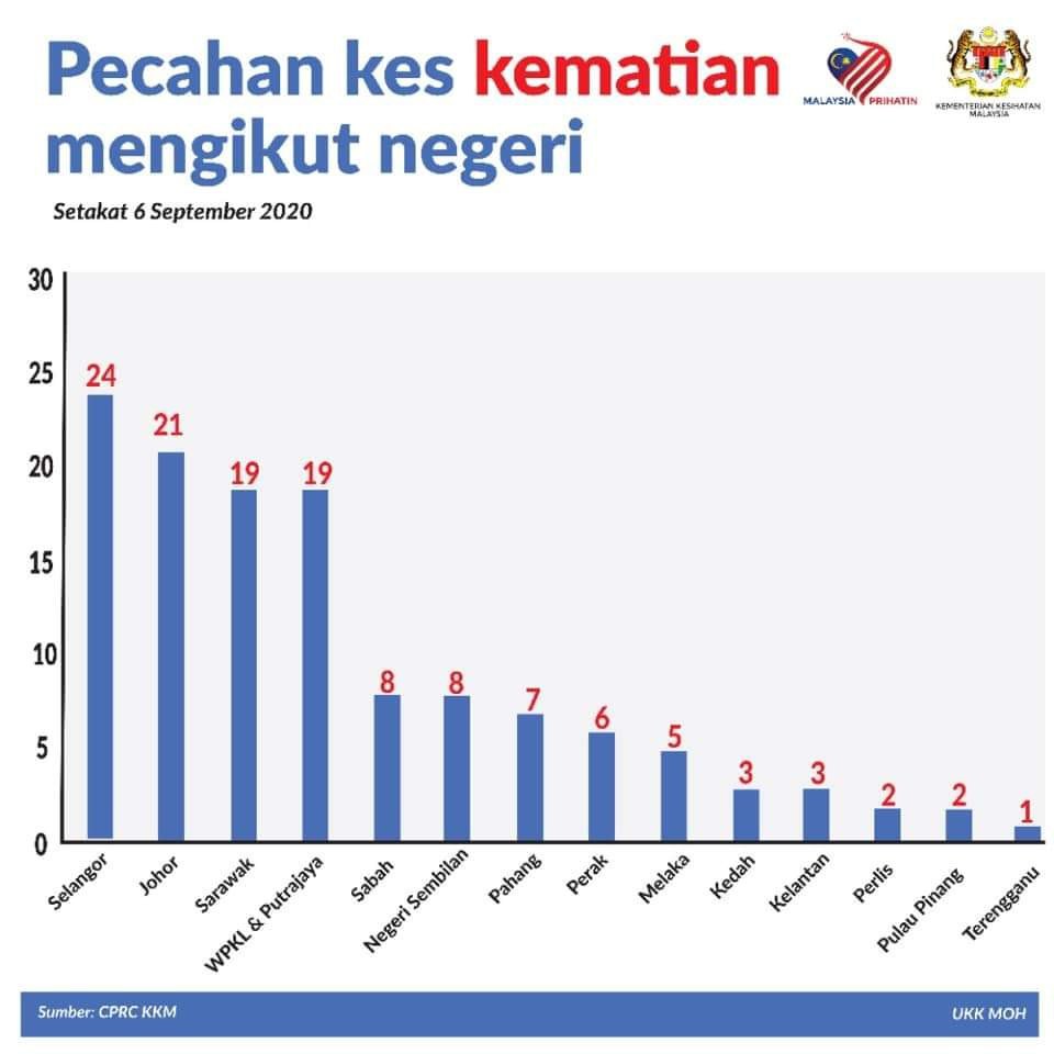 Pecahan Kes Kematian Mengikut Negeri 06/09/2020 Aiman Siaran Media 06 September 2020 Jumlah paparan: 949 Rating: ( 0 Rating ) Sila beri kadar Undi 1 Undi 2 Undi 3 Undi 4 Undi 5 /images/ndcc/documents/covid19/siaranmedia202009/SIARAN_MEDIA_KKM_20200907_03.jpg Facebook Twitter Seterusnya Seterusnya