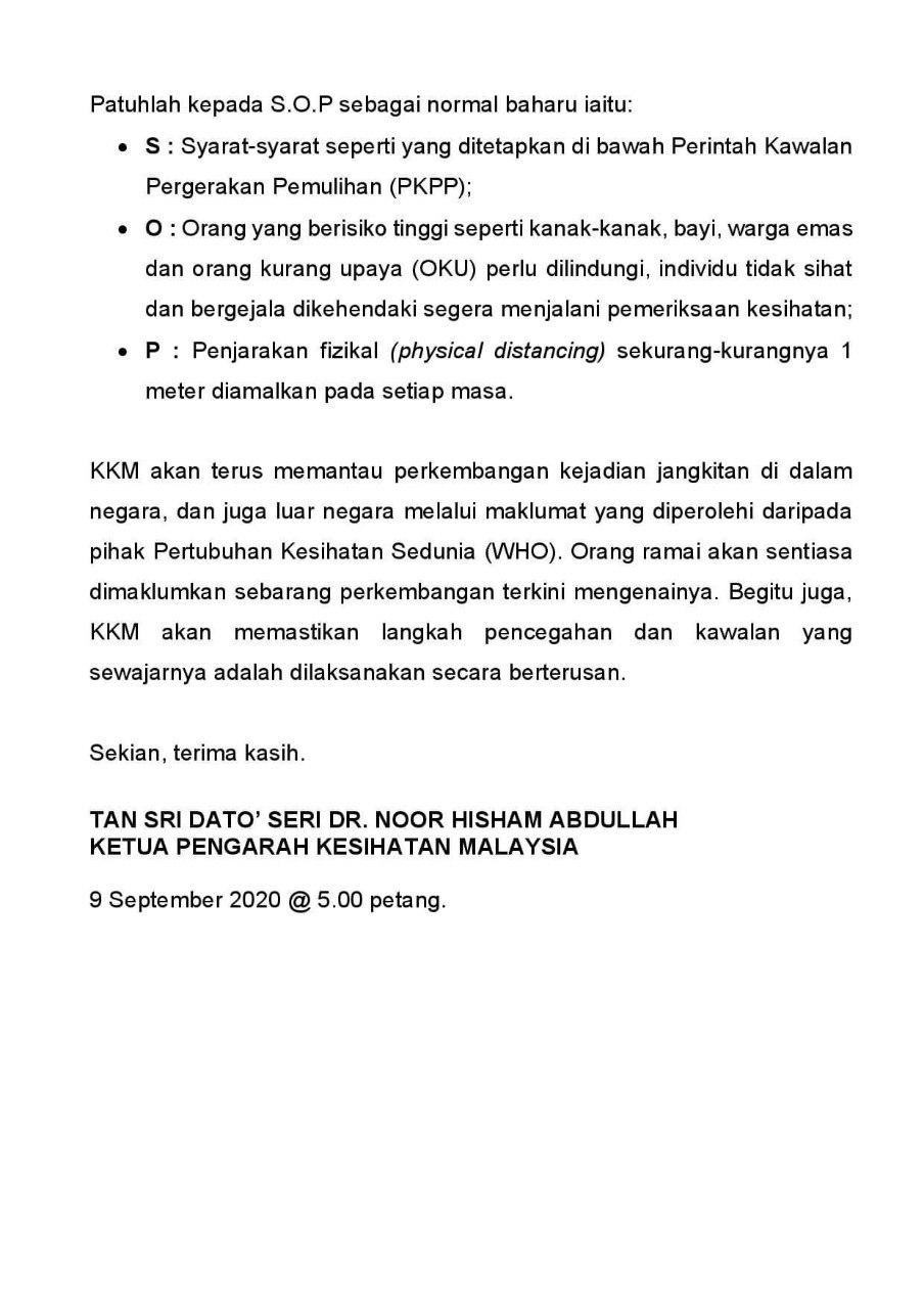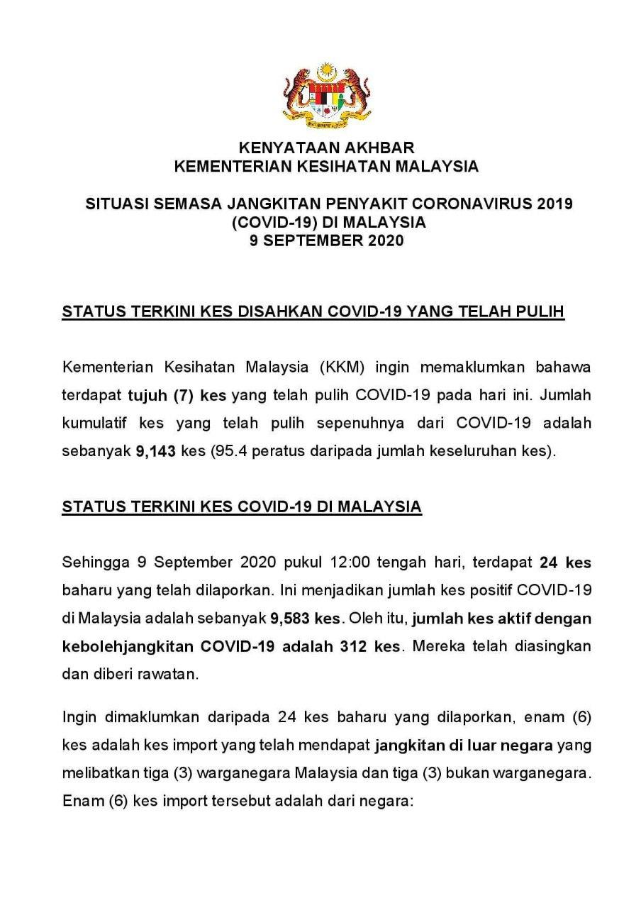 Kenyataan Akhbar KP KKM 09/09/2020 0500 PM Aiman Siaran Media 09 September 2020 Jumlah paparan: 851 Rating: ( 0 Rating ) Sila beri kadar Undi 1 Undi 2 Undi 3 Undi 4 Undi 5 Facebook Twitter Seterusnya Seterusnya