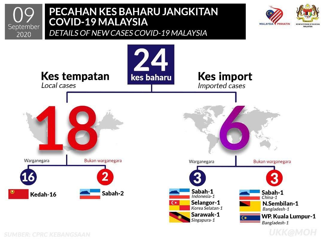 Statistik Pecahan Kes Baharu Jangkitan COVID-19 Malaysia 09/09/2020 Aiman Siaran Media 09 September 2020 Jumlah paparan: 1108 Rating: ( 0 Rating ) Sila beri kadar Undi 1 Undi 2 Undi 3 Undi 4 Undi 5 Lihat / Muat Turun JPG Facebook Twitter Seterusnya Seterusnya