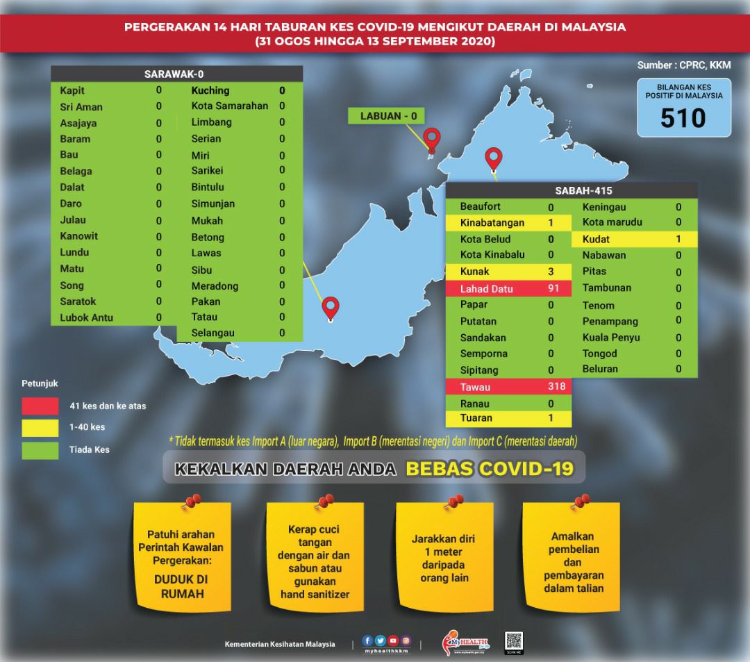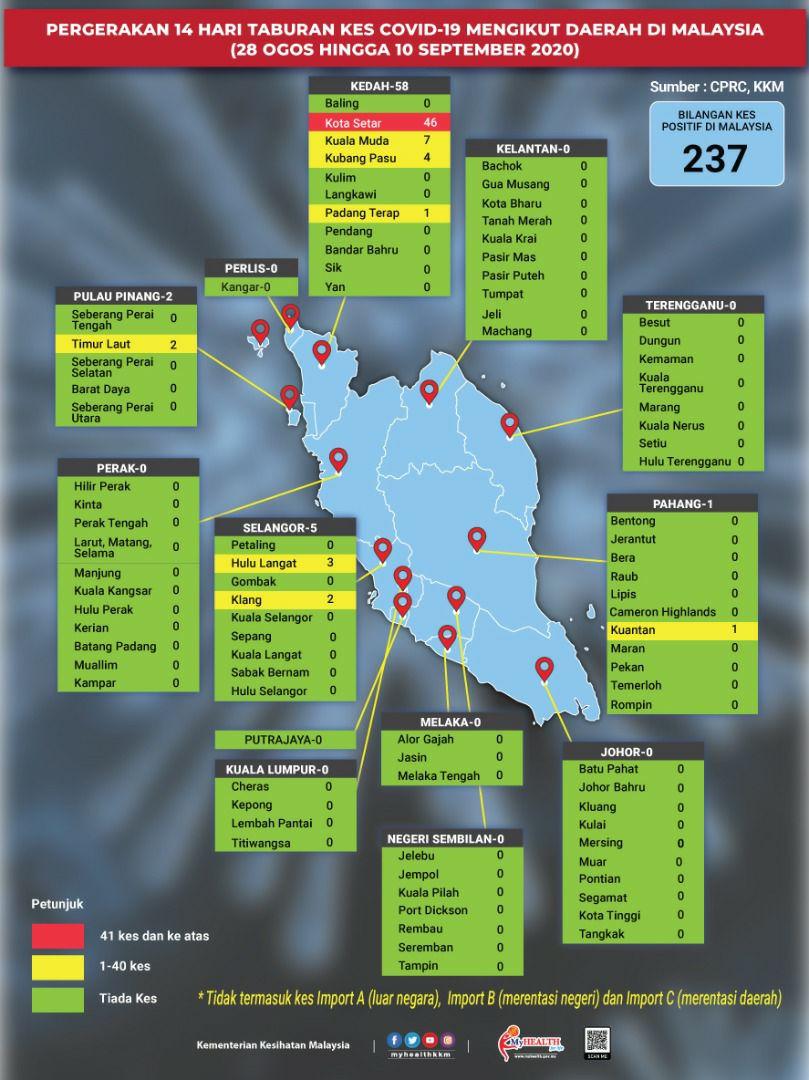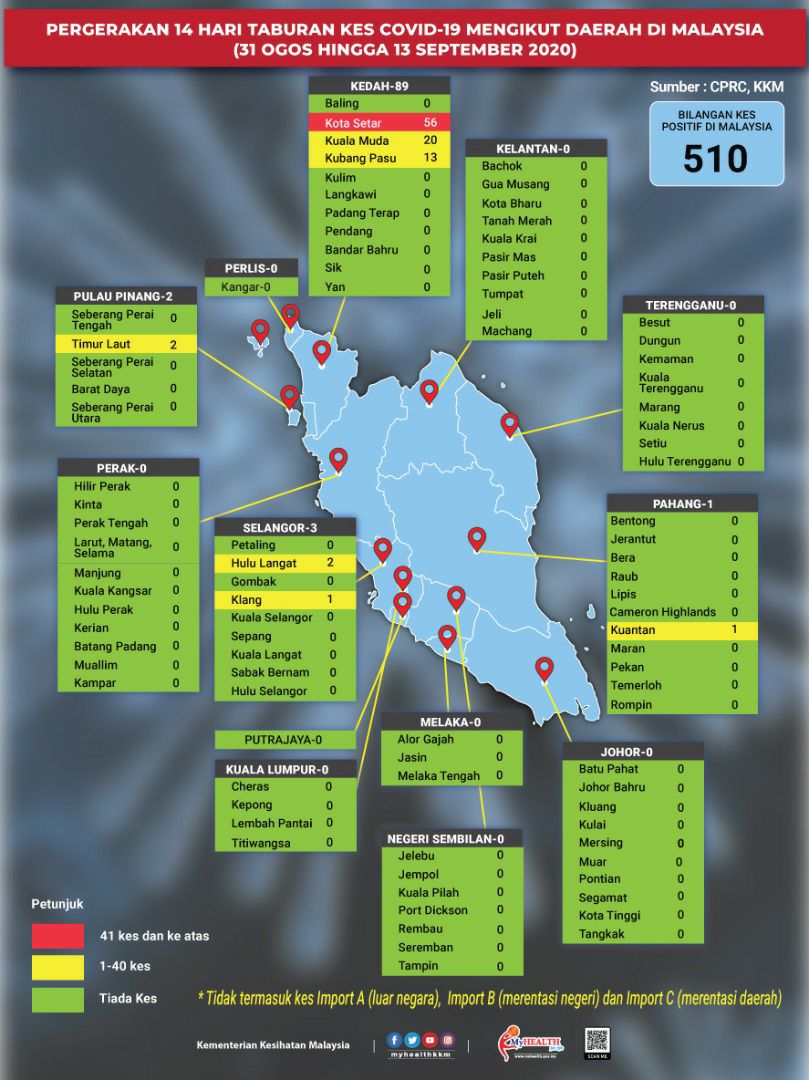Pergerakan 14 Hari Taburan Kes COVID-19 Mengikut Daerah Di Malaysia 13/09/2020 Aiman Siaran Media 13 September 2020 Jumlah paparan: 566 Rating: ( 0 Rating ) Sila beri kadar Undi 1 Undi 2 Undi 3 Undi 4 Undi 5 Lihat / Muat Turun JPG 1 Lihat / Muat Turun JPG 2 Facebook Twitter Seterusnya Seterusnya