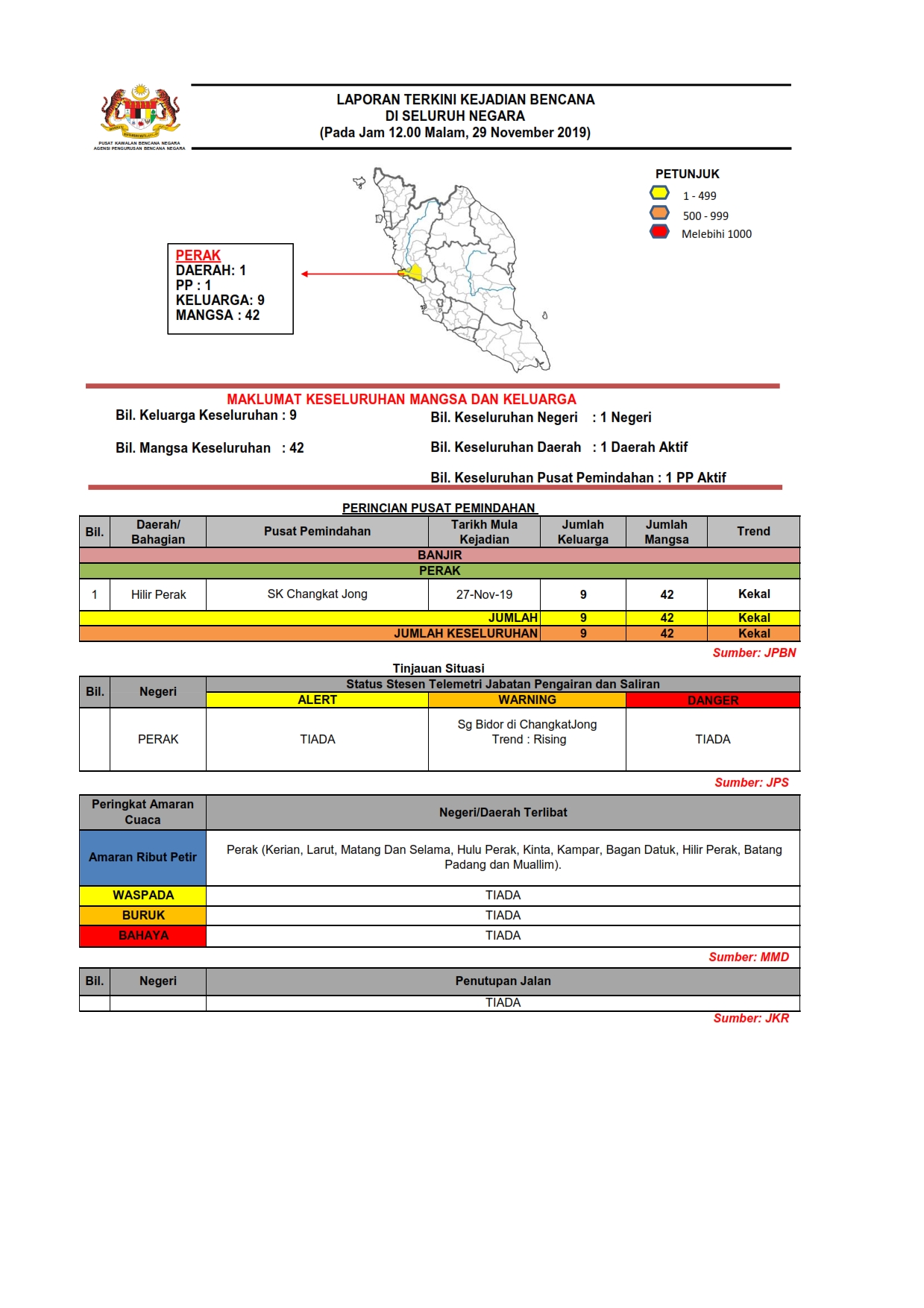 Cetak Laporan Situasi Bencana 29/11/2019 1200 AM Asrul Laporan Situasi 29 November 2019 Muat Turun PDF Muat Turun JPG Facebook Twitter Seterusnya Seterusnya