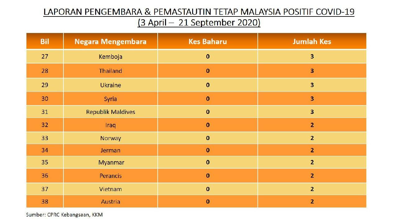 Laporan Pengembara & Pemastautin Tetap Malaysia Positif COVID-19 21/09/2020 Aiman Siaran Media 21 September 2020 Jumlah paparan: 745 Rating: ( 0 Rating ) Sila beri kadar Undi 1 Undi 2 Undi 3 Undi 4 Undi 5 Facebook Twitter Seterusnya Seterusnya