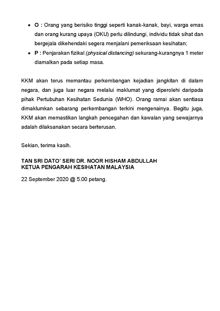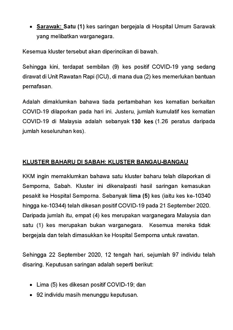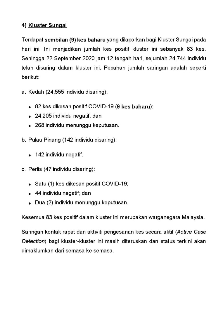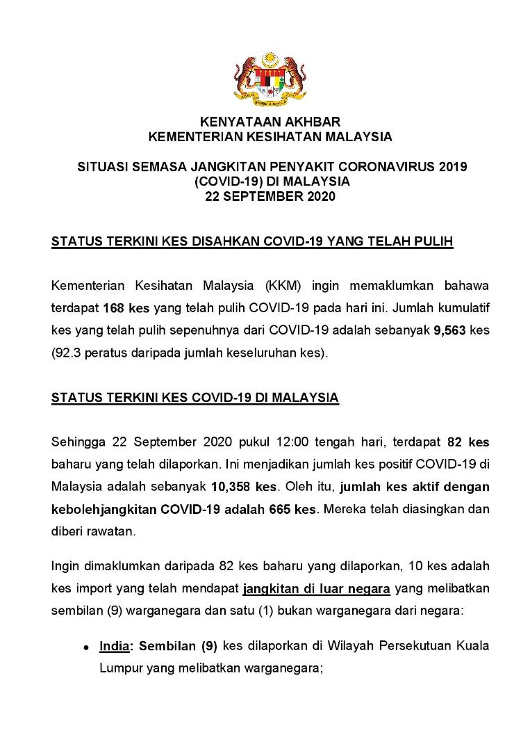 Kenyataan Akhbar KP KKM 22/09/2020 0500 PM Aiman Siaran Media 22 September 2020 Jumlah paparan: 737 Rating: ( 0 Rating ) Sila beri kadar Undi 1 Undi 2 Undi 3 Undi 4 Undi 5 Facebook Twitter Seterusnya Seterusnya