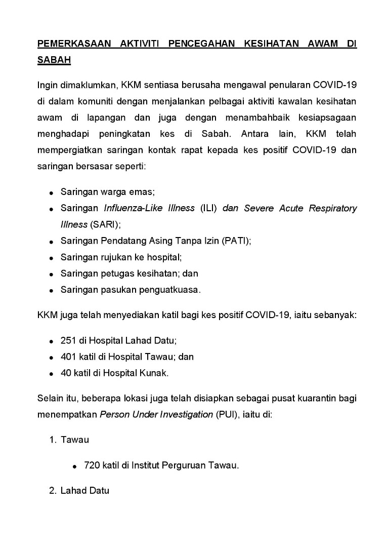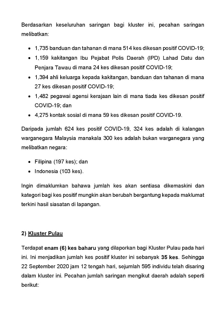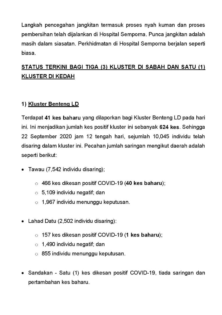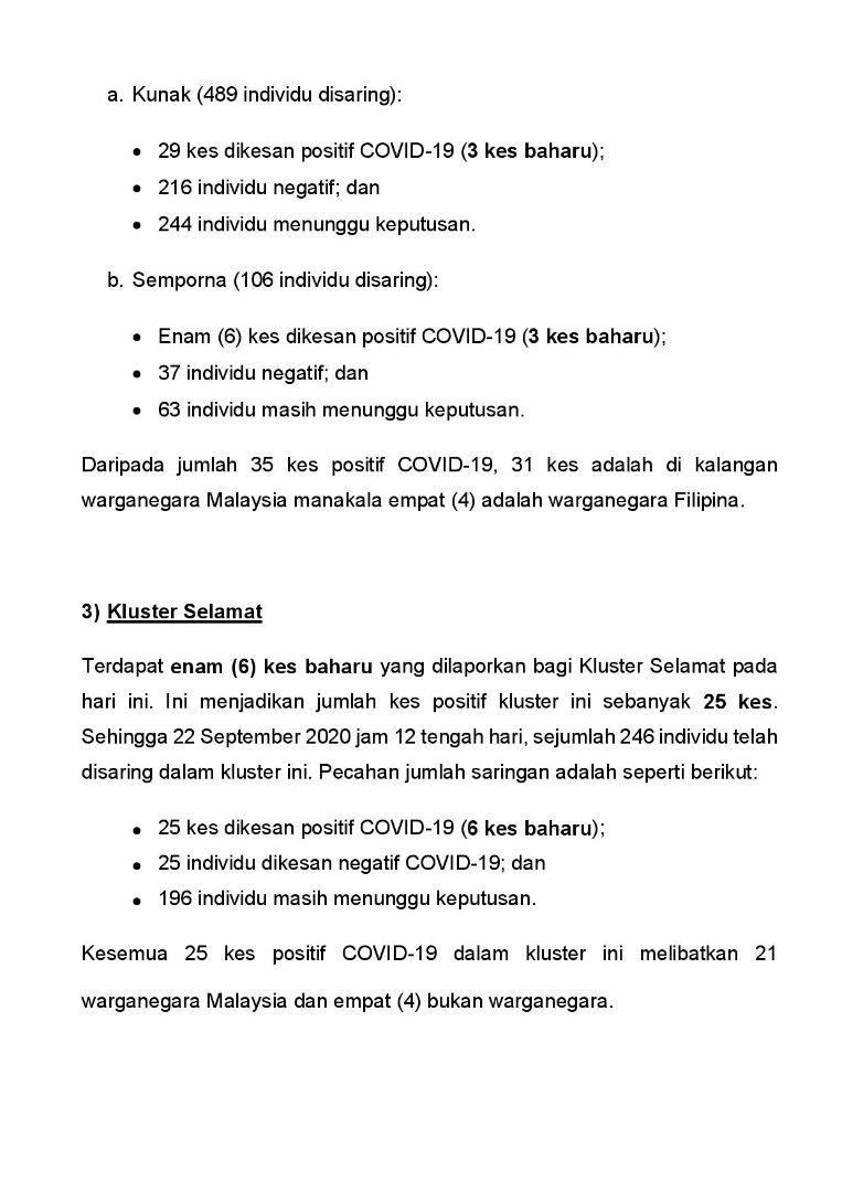 Kenyataan Akhbar KP KKM 22/09/2020 0500 PM Aiman Siaran Media 22 September 2020 Jumlah paparan: 737 Rating: ( 0 Rating ) Sila beri kadar Undi 1 Undi 2 Undi 3 Undi 4 Undi 5 Facebook Twitter Seterusnya Seterusnya