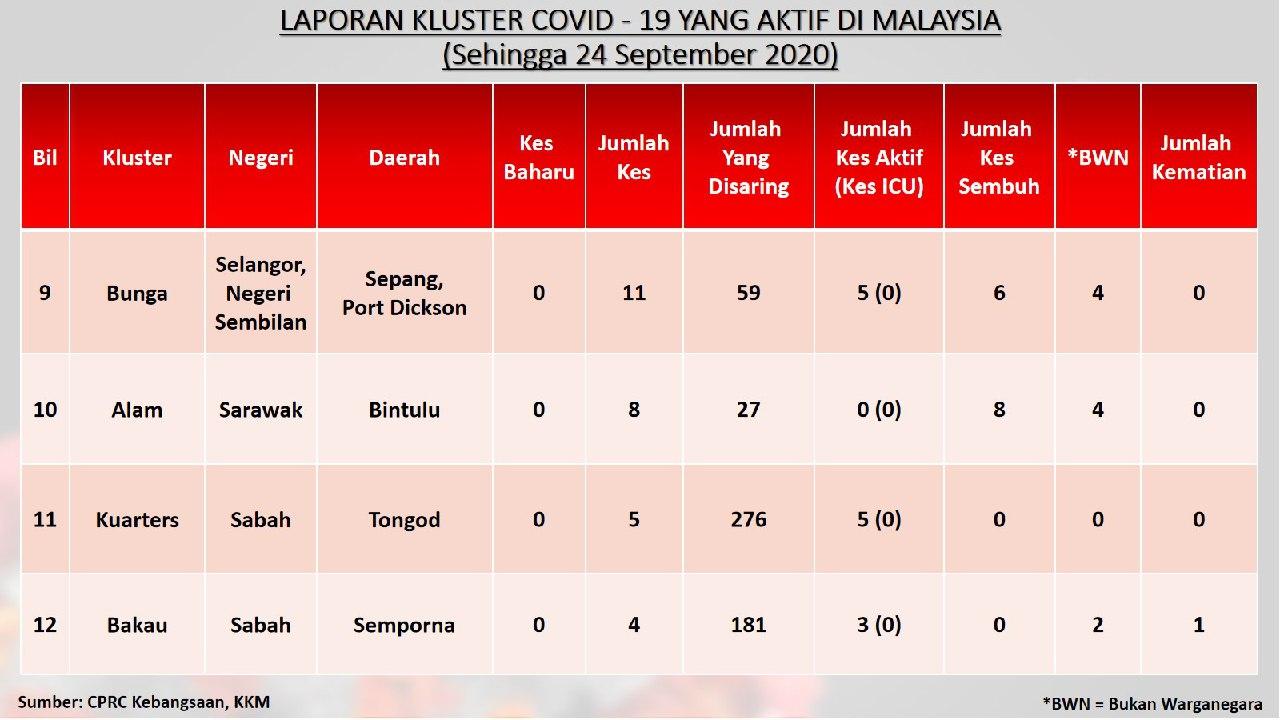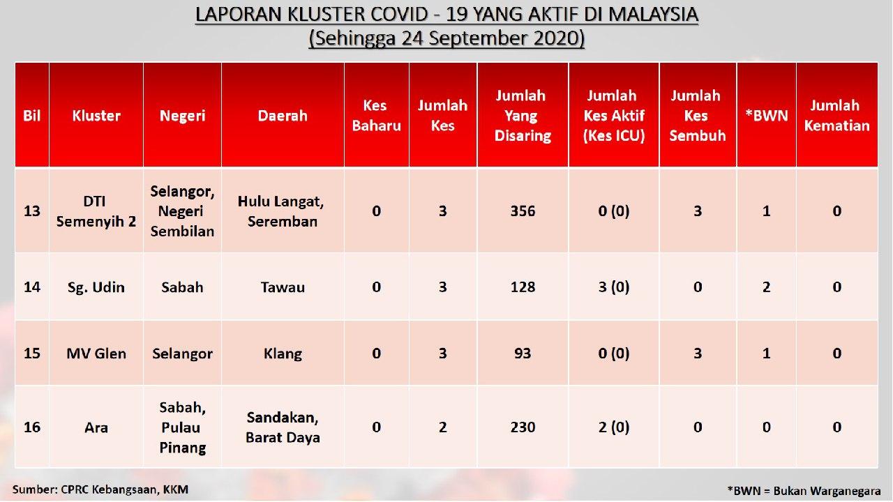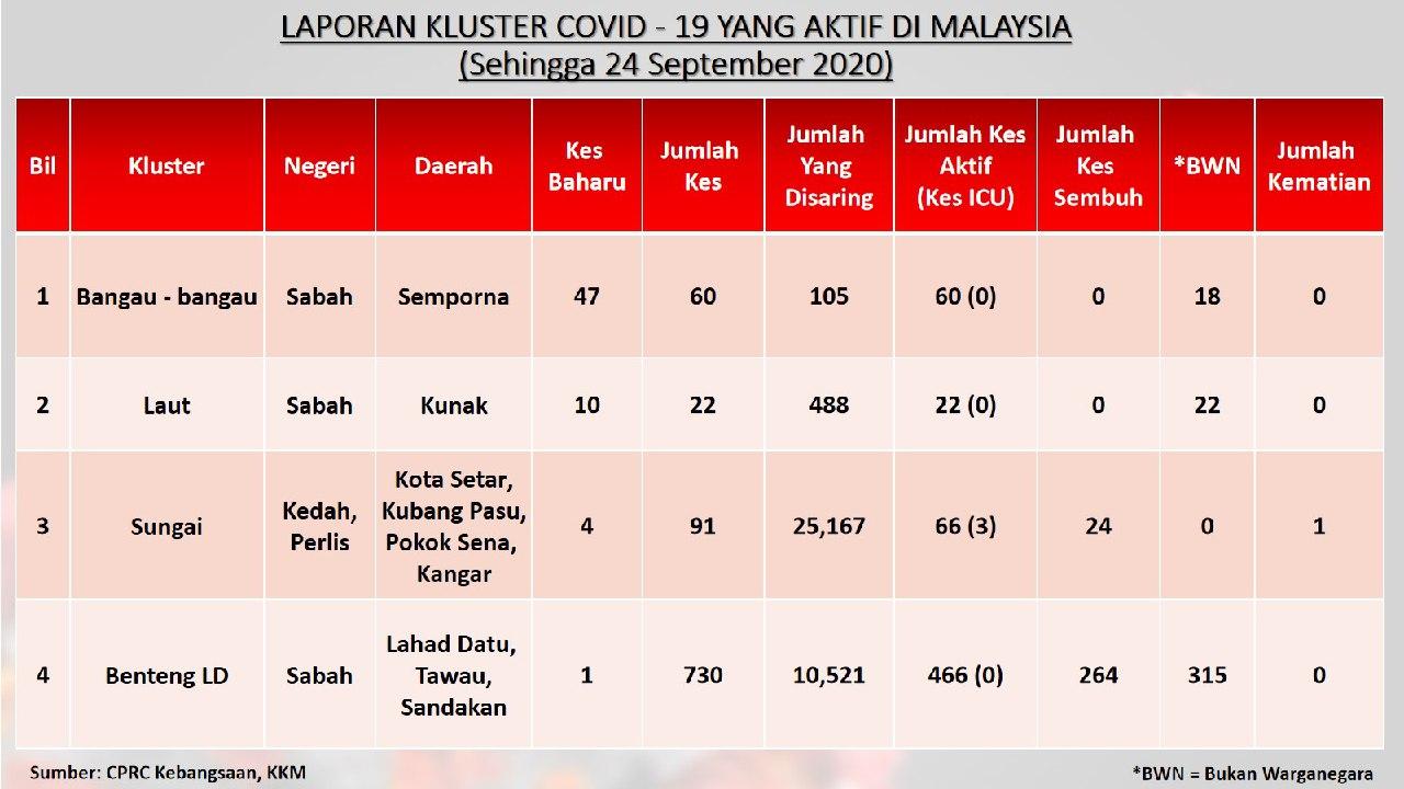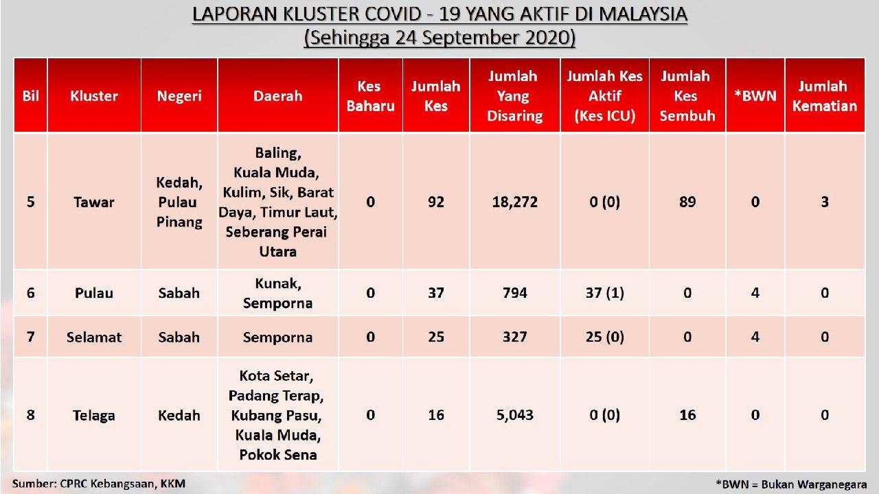 Laporan Kluster COVID-19 Aktif Di Malaysia 24/09/2020 Aiman Siaran Media 24 September 2020 Jumlah paparan: 661 Rating: ( 0 Rating ) Sila beri kadar Undi 1 Undi 2 Undi 3 Undi 4 Undi 5 Lihat / Muat Turun JPG 1 Lihat / Muat Turun JPG 2 Lihat / Muat Turun JPG 3 Facebook Twitter Seterusnya Seterusnya