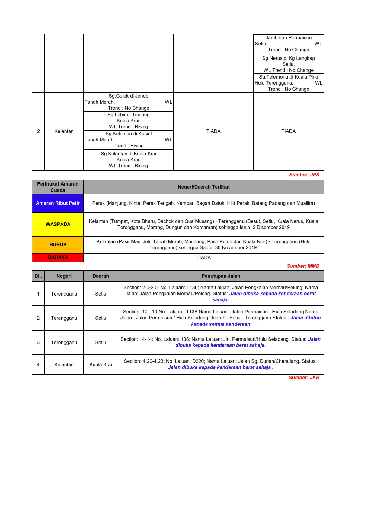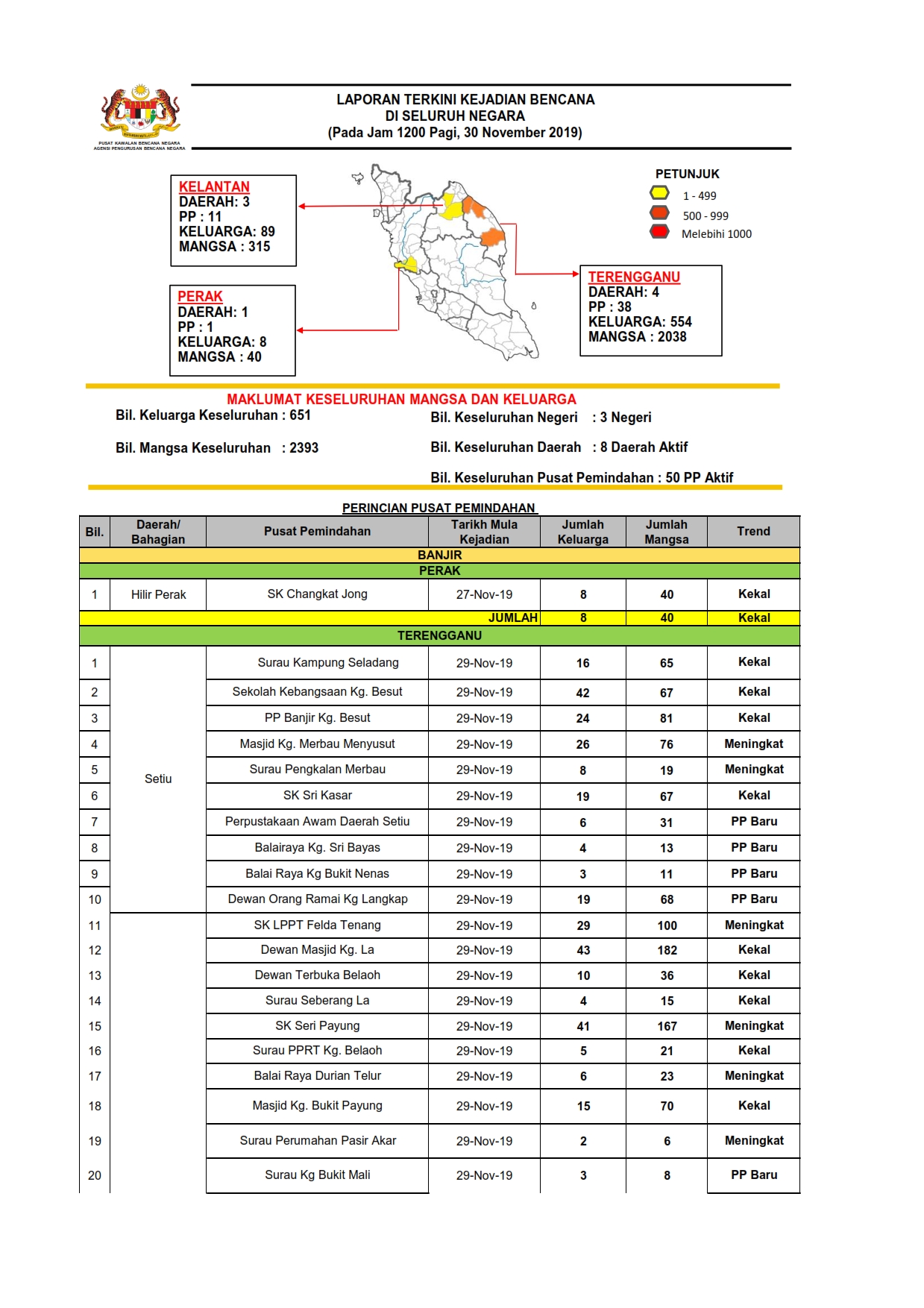 Cetak Laporan Situasi Bencana 30/11/2019 1200 AM Asrul Laporan Situasi 30 November 2019 Muat Turun PDF Muat Turun JPG 1 Muat Turun JPG 2 Facebook Twitter Seterusnya Seterusnya