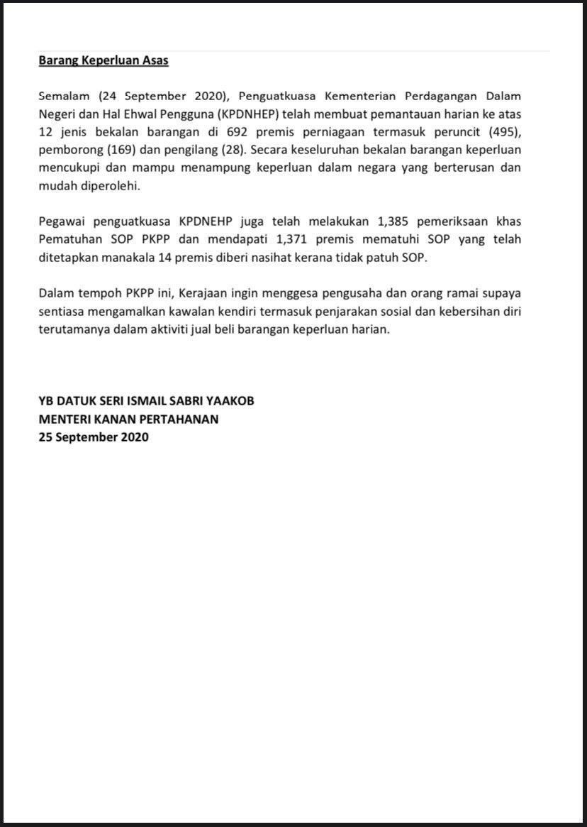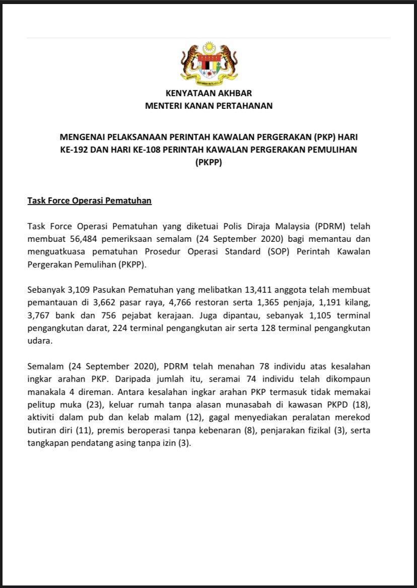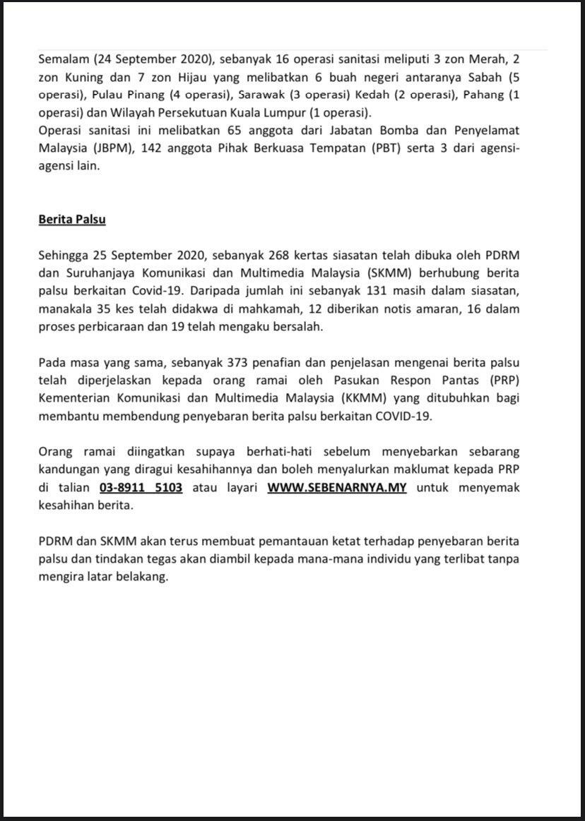 Kenyataan Akhbar Menteri Kanan Pertahanan 25/09/2020 0200 PM Aiman Siaran Media 25 September 2020 Jumlah paparan: 741 Rating: ( 0 Rating ) Sila beri kadar Undi 1 Undi 2 Undi 3 Undi 4 Undi 5 /bencana2/images/ndcc/documents/covid19/siaranmedia202009/SIARAN_MEDIA_KKM_20200925_.03pdf Facebook Twitter Seterusnya Seterusnya