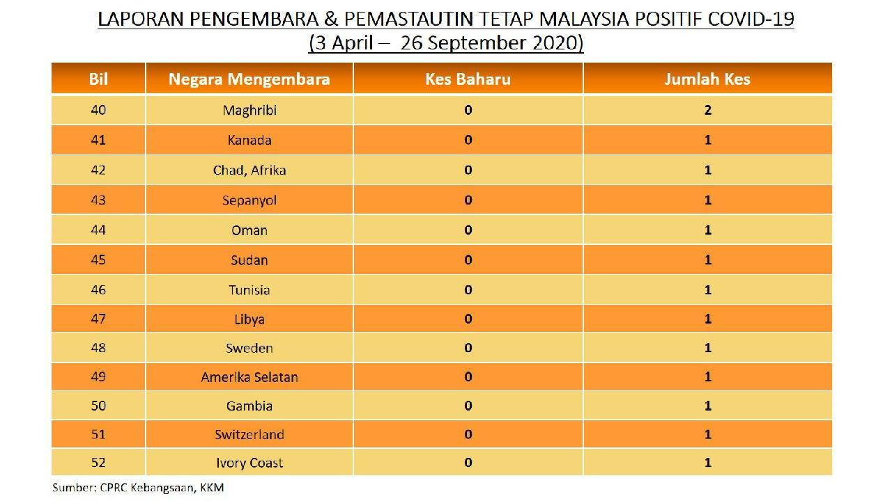 Laporan Pengembara & Pemastautin Tetap Malaysia Positif COVID-19 26/09/2020 Aiman Siaran Media 26 September 2020 Jumlah paparan: 613 Rating: ( 0 Rating ) Sila beri kadar Undi 1 Undi 2 Undi 3 Undi 4 Undi 5 Facebook Twitter Seterusnya Seterusnya