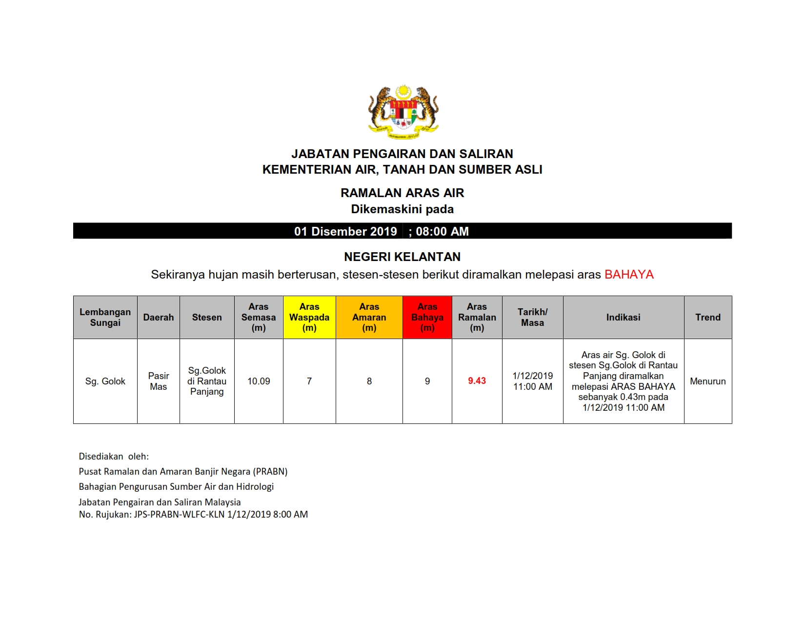 Ramalan Aras Air 01/12/2019 0800 AM Aiman Cuaca 01 Disember 2019 Jumlah paparan: 939 Rating: ( 0 Rating ) Sila beri kadar Undi 1 Undi 2 Undi 3 Undi 4 Undi 5 Lihat / Muat Turun PDF Muat Turun JPG 1 Facebook Twitter Seterusnya Seterusnya