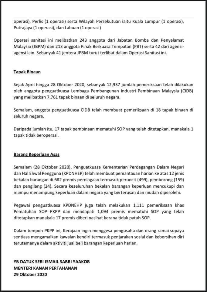Kenyataan Akhbar Menteri Kanan Pertahanan 29/10/2020 0200 PM Aiman Siaran Media 29 Oktober 2020 Jumlah paparan: 947 Rating: ( 0 Rating ) Sila beri kadar Undi 1 Undi 2 Undi 3 Undi 4 Undi 5 Lihat / Muat Turun PDF Facebook Twitter Seterusnya Seterusnya