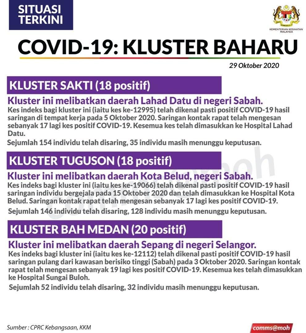Situasi Terkini Kluster Baharu Covid-19 29/10/2020 Aiman Siaran Media 29 Oktober 2020 Jumlah paparan: 665 Rating: ( 0 Rating ) Sila beri kadar Undi 1 Undi 2 Undi 3 Undi 4 Undi 5 Lihat / Muat Turun JPG 1 Lihat / Muat Turun JPG 2 Facebook Twitter Seterusnya Seterusnya