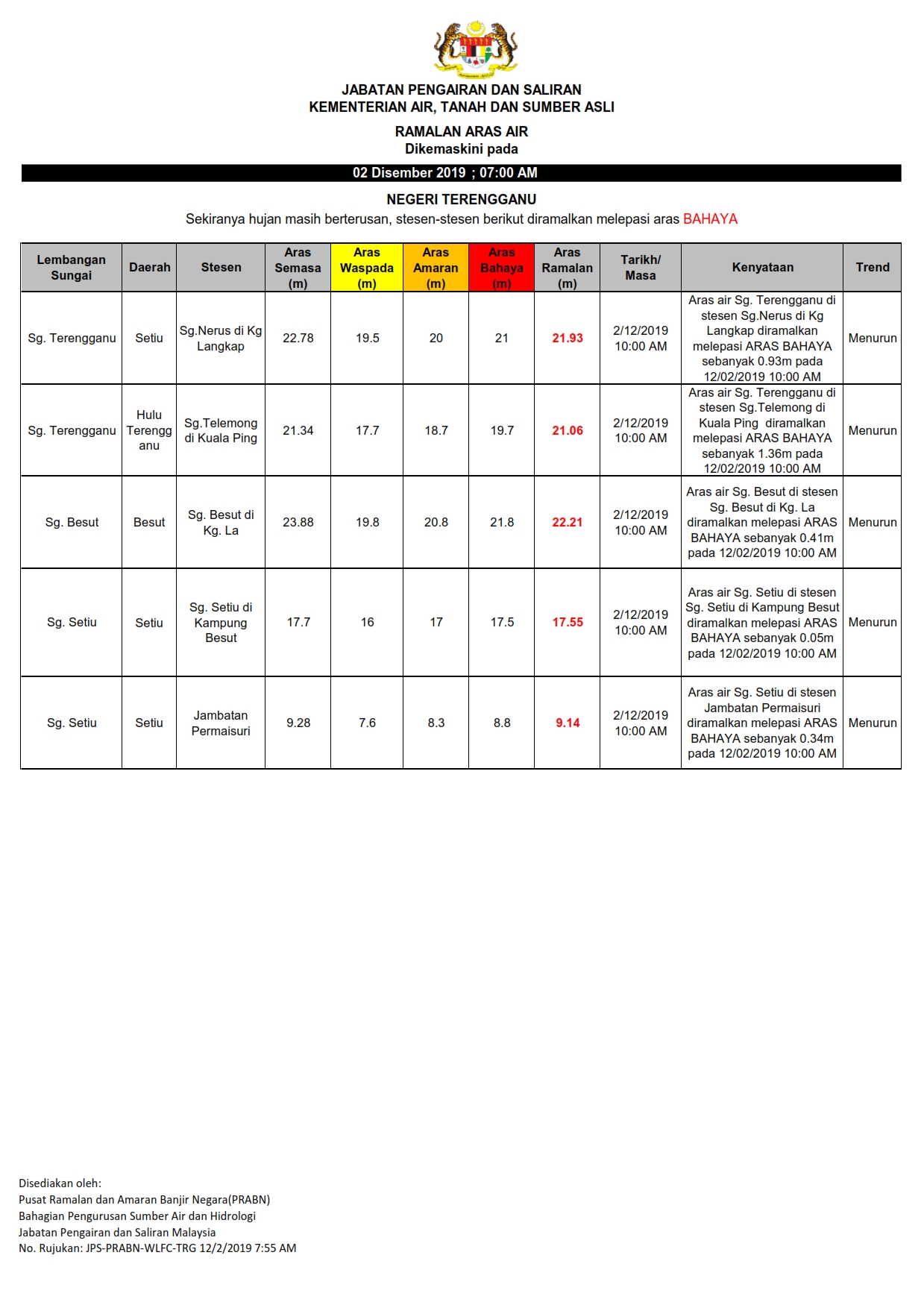 Ramalan Aras Air Terengganu 02/12/2019 0700 AM Asrul Cuaca 02 Disember 2019 Jumlah paparan: 949 Rating: ( 0 Rating ) Sila beri kadar Undi 1 Undi 2 Undi 3 Undi 4 Undi 5 Lihat / Muat Turun PDF Muat Turun JPG 1 Facebook Twitter Seterusnya Seterusnya