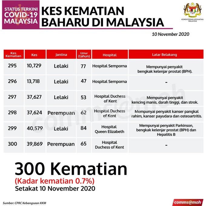 Kes Kematian Baharu COVID-19 Di Malaysia 10/11/2020 Aiman Siaran Media 10 November 2020 Jumlah paparan: 767 Rating: ( 0 Rating ) Sila beri kadar Undi 1 Undi 2 Undi 3 Undi 4 Undi 5 Lihat / Muat Turun JPG Facebook Twitter Seterusnya Seterusnya