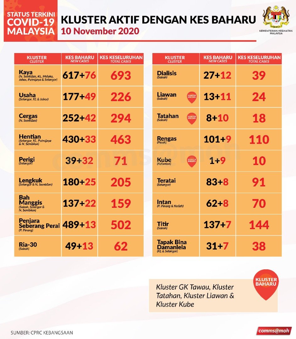 Situasi Terkini Kluster Aktif Dengan Kes Baharu Covid-19 10/11/2020 Aiman Siaran Media 10 November 2020 Jumlah paparan: 745 Rating: ( 0 Rating ) Sila beri kadar Undi 1 Undi 2 Undi 3 Undi 4 Undi 5 Lihat / Muat Turun JPG 1 Lihat / Muat Turun JPG 2 Lihat / Muat Turun JPG 3 Facebook Twitter Seterusnya Seterusnya