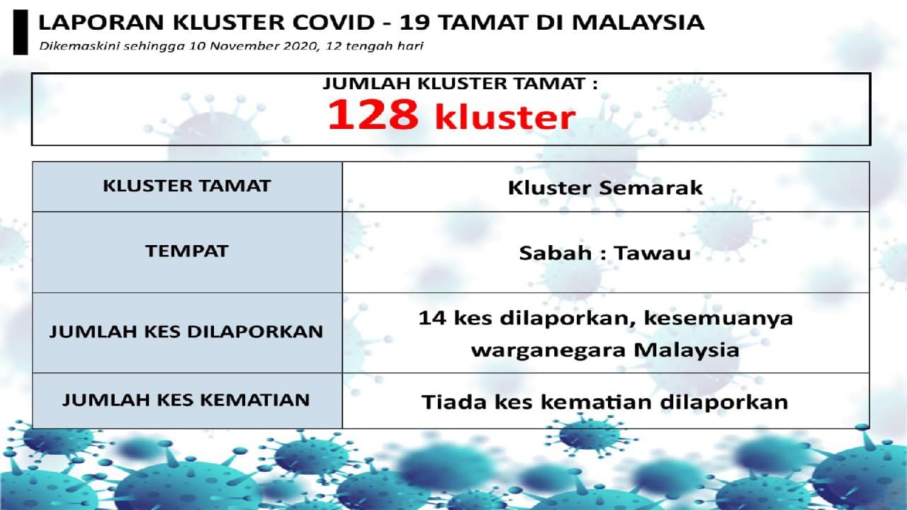Laporan Kluster COVID-19 Tamat Di Malaysia 10/11/2020 1200 PM Aiman Siaran Media 10 November 2020 Jumlah paparan: 798 Rating: ( 0 Rating ) Sila beri kadar Undi 1 Undi 2 Undi 3 Undi 4 Undi 5 Facebook Twitter Seterusnya Seterusnya